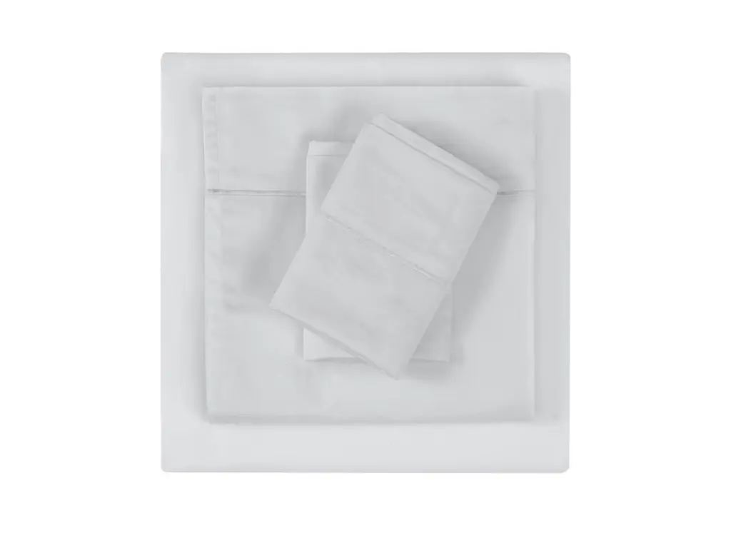 Enhance the idea of comfort with this 300 thread count sheet set. This fabric is made from long-fiber woven threads that create a silky, soft and smooth feel that will wear well over time. The fitted sheet's 15 inch pocket will fit any mattress up to 18 inches and the elastic edges will help to keep it in place. With a variety of colors offered and a sensational yet subtle sheen, this collection is guaranteed impress. You can rest assured this program is made responsibly with OEKO-TEX Standard 100 Certification with certificate 14.HIN.38767 as certified by Hohenstein.