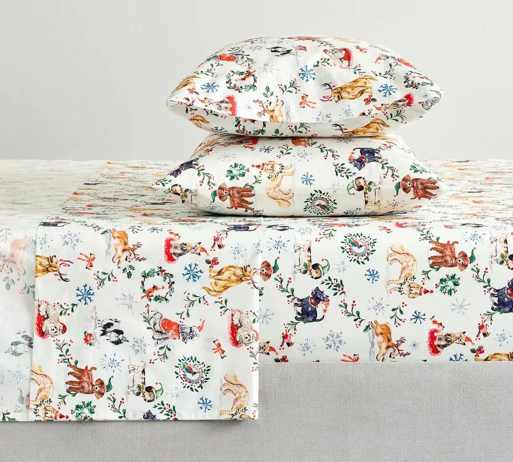 Bring festive cheer to your bedroom with this Christmas bed sheet set, featuring adorable reindeer, Christmas trees, snowflakes, and a joyful "MERRY CHRISTMAS" print. Crafted from soft brushed microfiber, these sheets are breathable, ultra-comfortable, and designed with a deep 16-inch pocket plus 360° elastic for a snug, stay-put fit on mattresses 8–14 inches thick. Fade, stain, shrink, and wrinkle resistant, this bedding sheet set is easy to care for—just machine wash in cold and enjoy a cozy, vibrant look all season long.