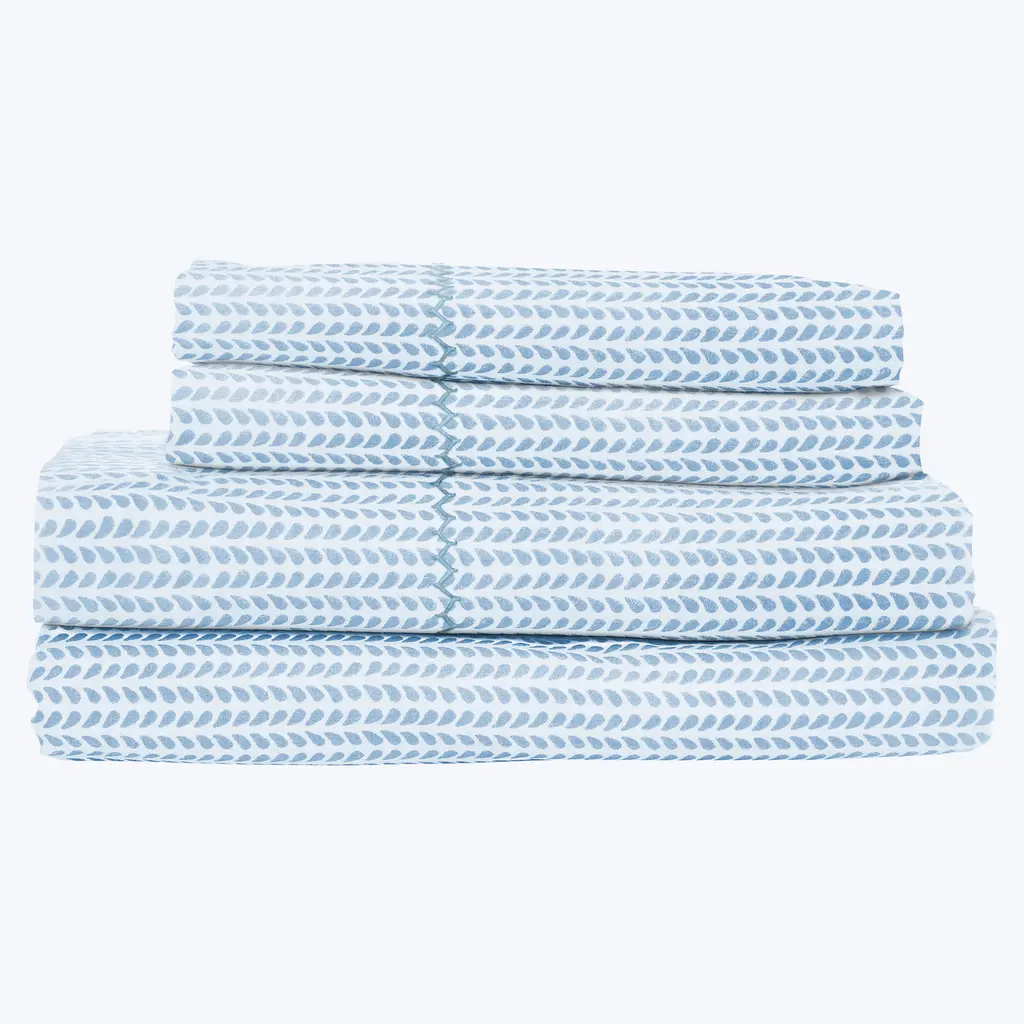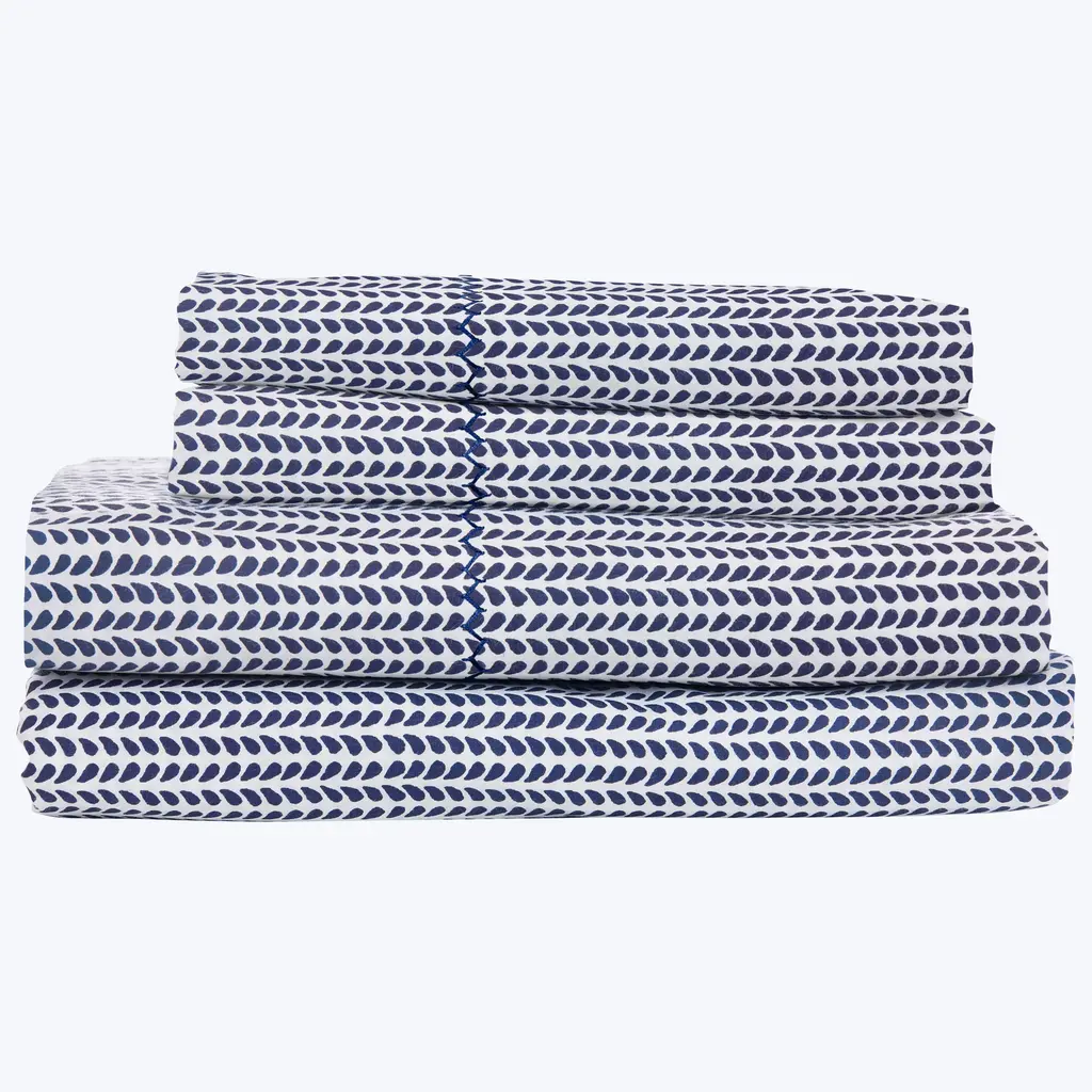 John Robshaw's iconic Cinde print is now available as an organic sheet set! We think of this print as stylized rain, but the workshop dubbed it “duckbills,” which is actually more fun! 200 Thread Count organic cotton percale. Created using hand-stitched methods that are a tradition in India, passed down from generation to generation. Featuring a distinct balance of bold and bright from old-world traditions and new-world style, John Robshaw displays an updated spin on traditional, handmade textiles with a vibrant mix of sophistication and romantic allure. Dying, printing, and experimenting alongside the artisans to create these unique fabrics, John Robshaw helps preserve traditional block printing, hand-stitching, hand-painting, and hand-quilting textiles in India.