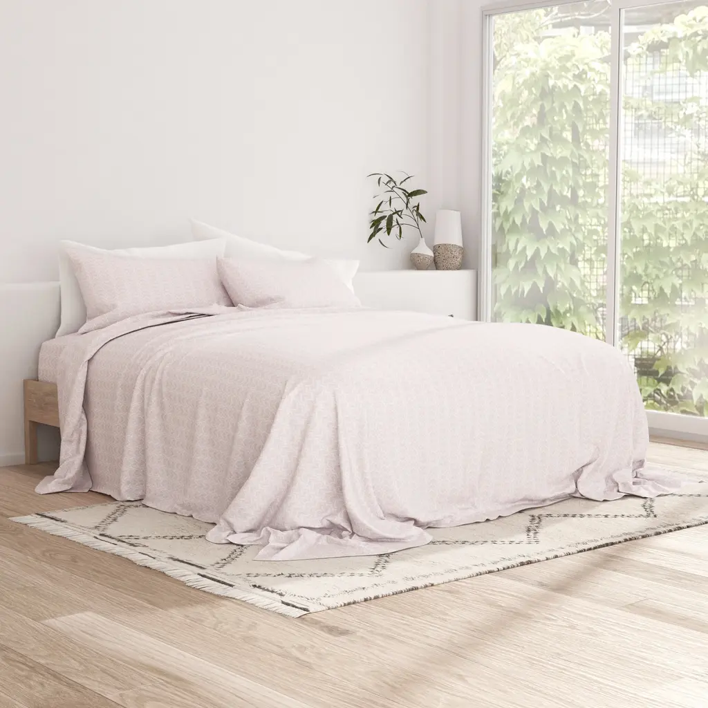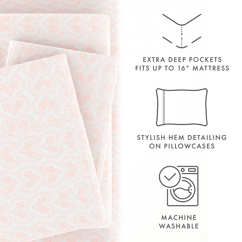 Our double-brushed patterned microfiber sheet set is super soft to the touch and wrinkle-resistant. We use premium yarns that are twice as durable as cotton, which means less risk of rips and wear. Naturally hypoallergenic, our sheets are ideal for sensitive skin and those with allergies. Available in a variety of unique designer prints and patterns, including florals, geometrics, and stripes, making it the perfect new addition to your room!
