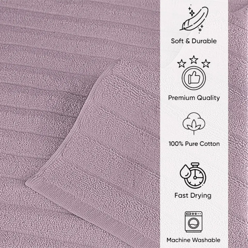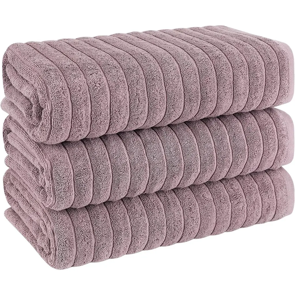 Classic Turkish Towels Cotton Bath Sheets Set & Oversized Ribbed Towels, Ultra-Soft & Absorbent & Set Of 3 - 40x65 - Mauve