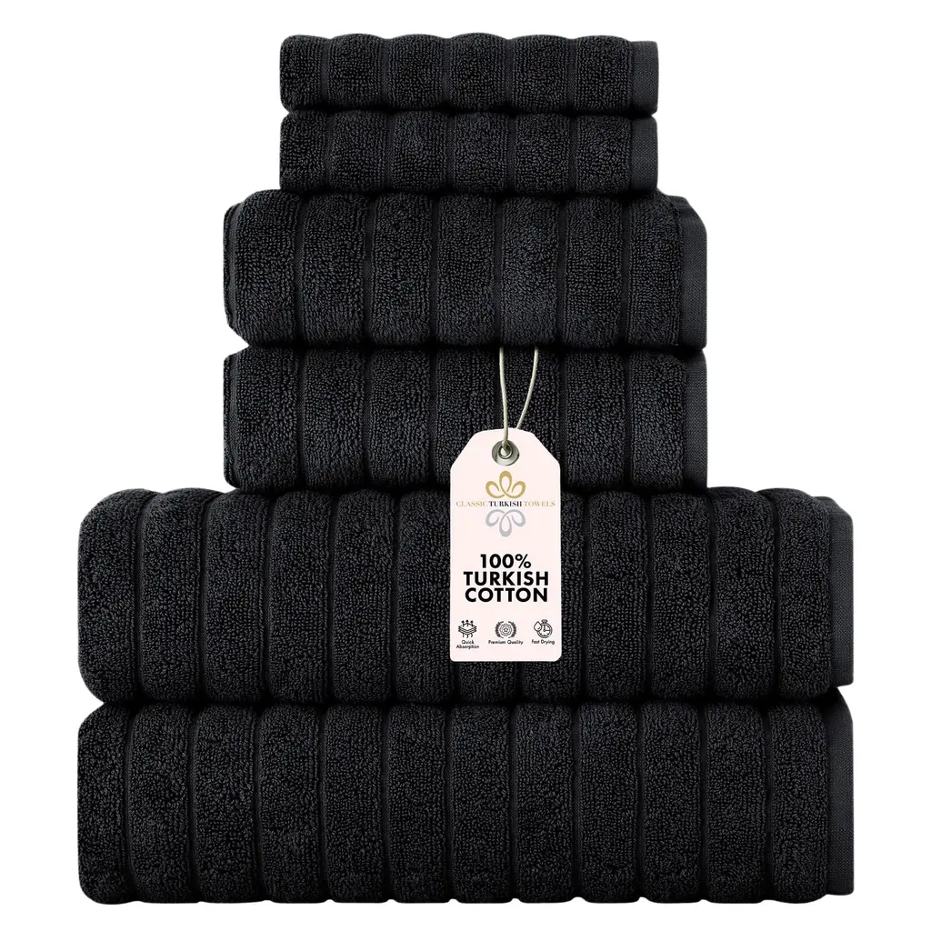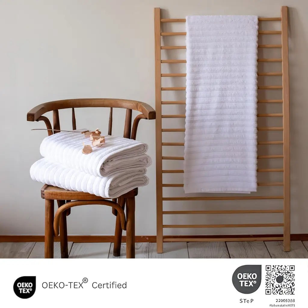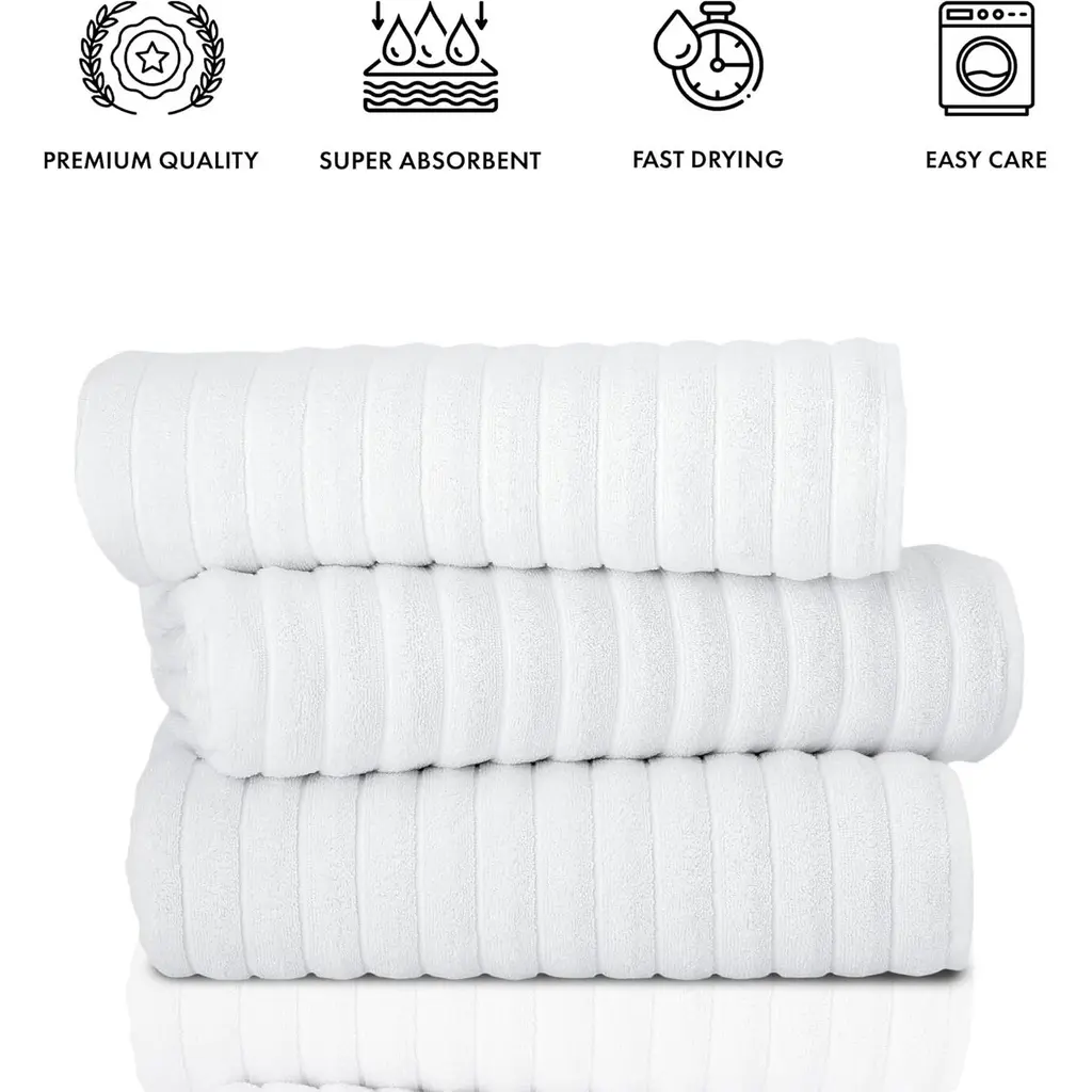 Classic Turkish Towels Cotton Bath Sheets Set & Oversized Ribbed Towels, Ultra-Soft & Absorbent & Set Of 3 - 40x65 - White