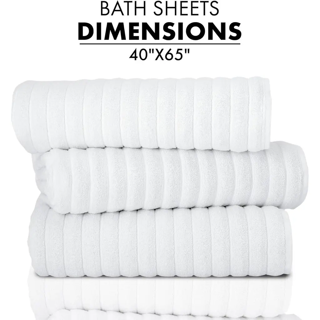 Indulge in spa-like luxury at home with this 3-piece set of oversized ribbed bath sheets. Woven from 100% combed Turkish cotton, each towel offers a rich, ultra-soft texture with superior absorbency thanks to its 650 GSM weight and 2-ply construction. The stylish ribbed finish and pre-shrunk dobby border ensure lasting durability and an elegant look after every wash. Measuring a generous 40 inches by 65 inches, these bath sheets provide full coverage and exceptional comfort. Choose from a variety of timeless colors to elevate your bathroom decor effortlessly.Features: