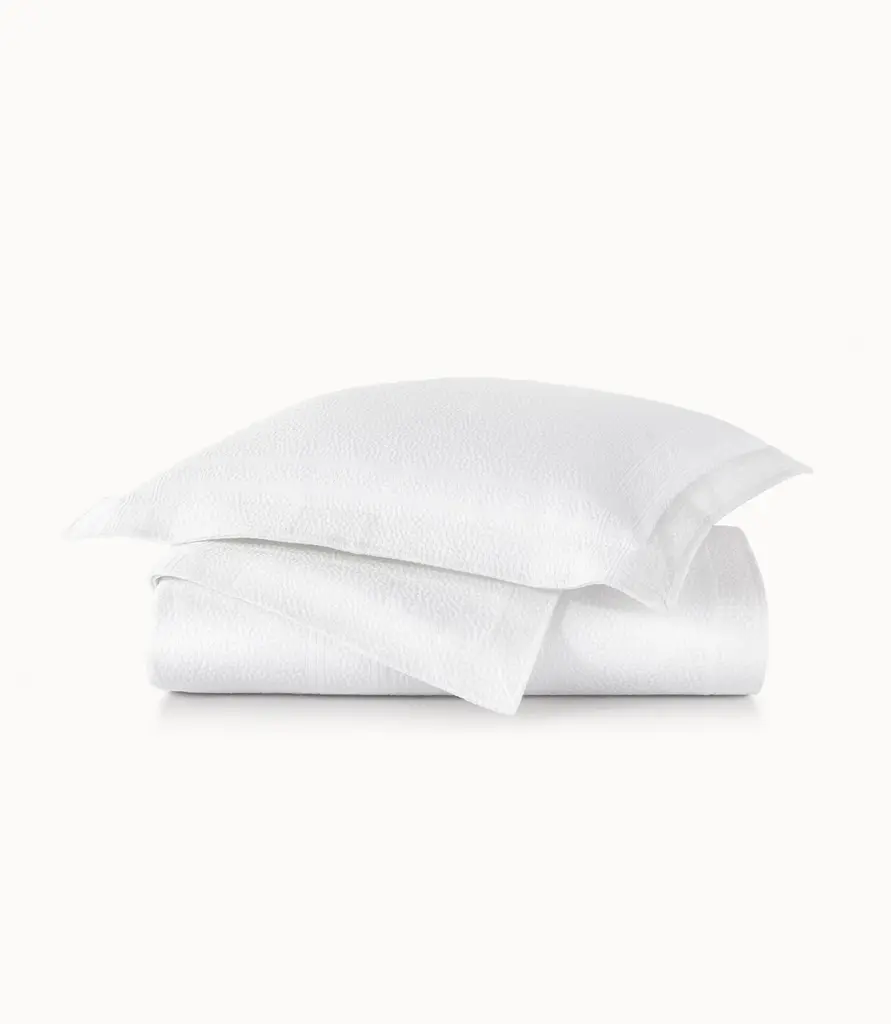 Pom Pom at Home offers superior linens and textiles made with the highest quality natural fibers for that relaxed, lived-in feel. Cotton sateen brings a luxurious drape to this bedding collectionfeaturing a 3" flange with a hemstitch detail for a delicate touch. Each set includes a fitted sheet, flat sheet, and a pair of pillowcasesor a single pillowcase for the twin size.
