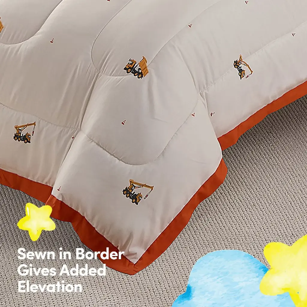 Turn your child's room into a fun and adventurous construction zone with our Construction Printed Kids Microfiber Bed in a Bag Set! Designed for little builders, this complete bedding set combines comfort and playful design, featuring construction trucks and traffic cones. Made from ultra-soft, durable microfiber, it's easy to care for and built for everyday use. Make bedtime an exciting adventure with our Construction Printed Kids Microfiber Bed in a Bag Set. Your child will love the fun design, and you'll love the quality and convenience.