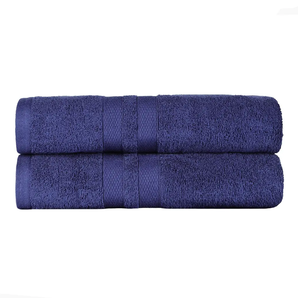 Cotton Quick-Drying 2 Piece Absorbent Solid Bath Sheet Set By Superior - Navy Blue