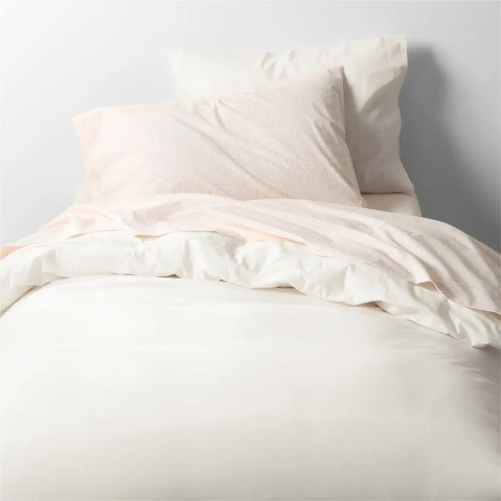 Our CozyCloud bedding collection makes a dreamy dorm room bed. This organic cotton extra-long twin sheet set in a breathable percale weave sleeps cool, while the supersoft washed finish keeps things cozy. The look is sweet and understated, with petite pink petals scattered on creamy ivory. We love these sheets mixed and matched with our other solid and patterned bedding in the same fresh palette.Bed pillows also available.