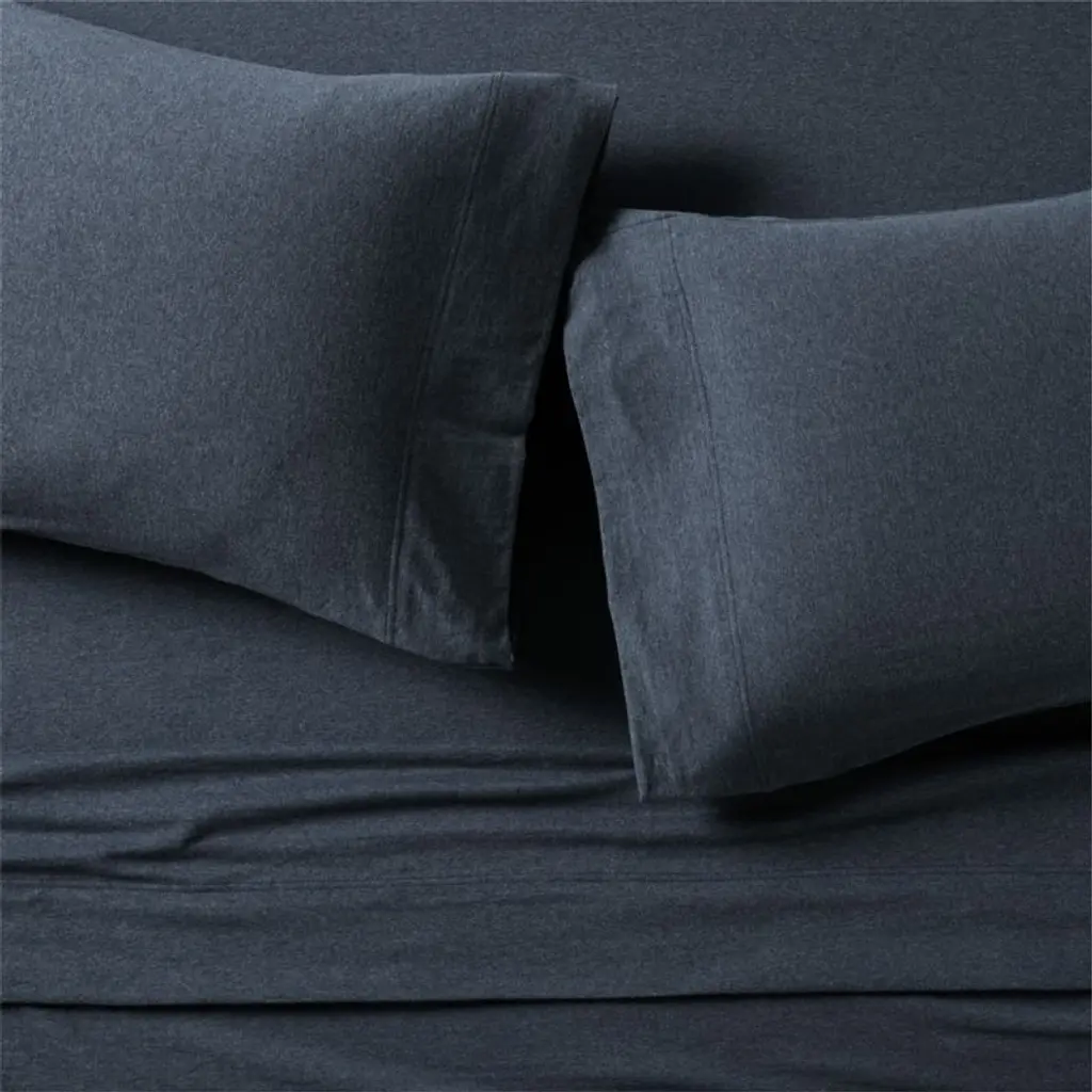 Softer than your favorite t-shirtand just as casual-classicour Cozysoft collection makes a bed you won't want to get out of. Organic cotton knits breathable jersey bedding that's supersoft and irresistibly cozy. Heathered for a dark blue with depth, the midnight navy sheet set layers with the coordinating duvet covers, pillowcases and shams for a modern look that's understated and inviting.Bed Pillows also available.