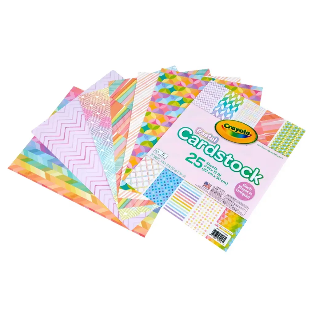 Crayola 25 Page Pastel Cardstock With Assorted Patterns: Multicolor Craft Paper, 9X12 Inches, Uncoated, 25 Sheets