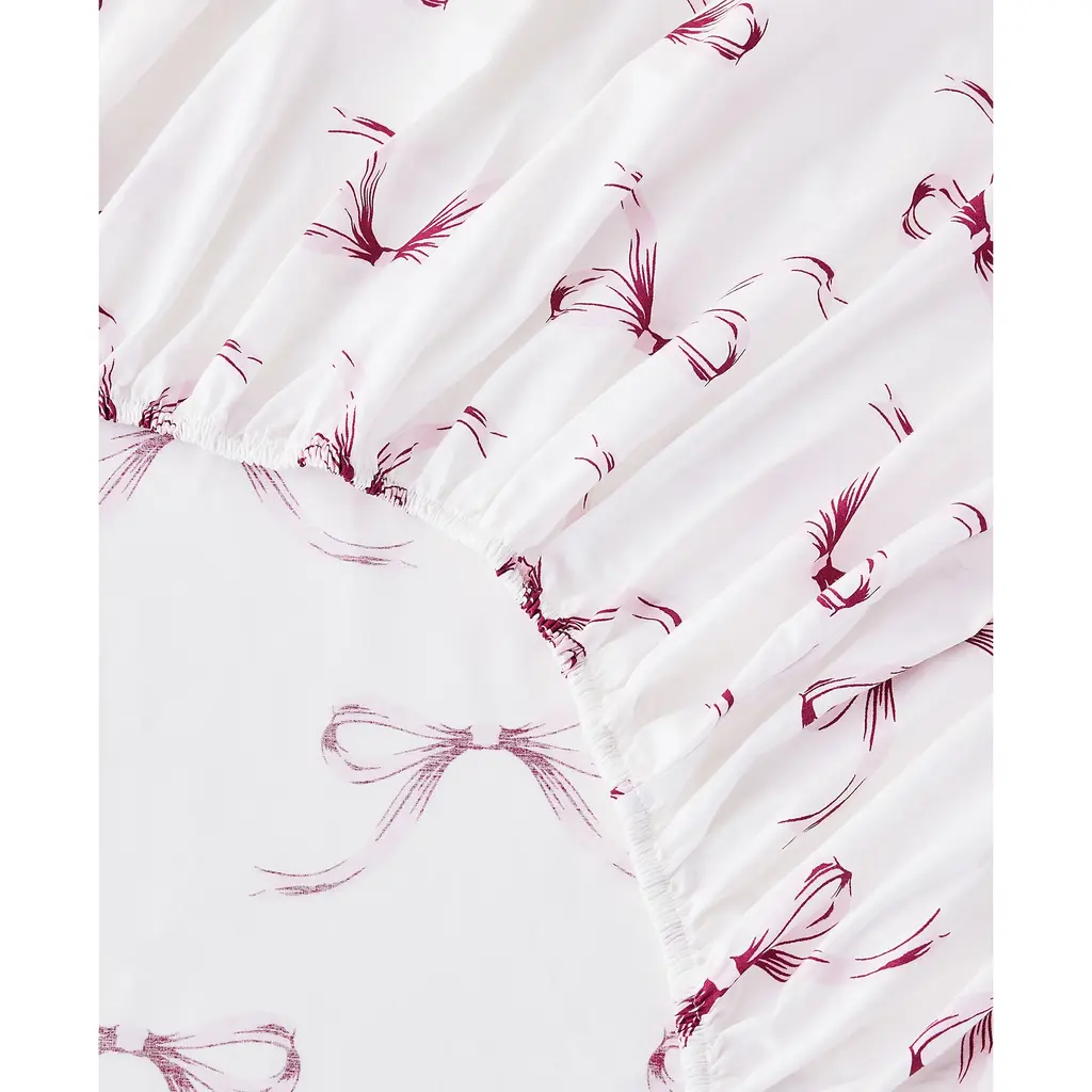 Woven from 100% cotton and pre-washed for softness, Bedford Lane's Crisp Bows percale sheet set has the feel of heirloom linens passed down through generations. Featuring a dainty, timeless print, it brings a cozy charm to any space.