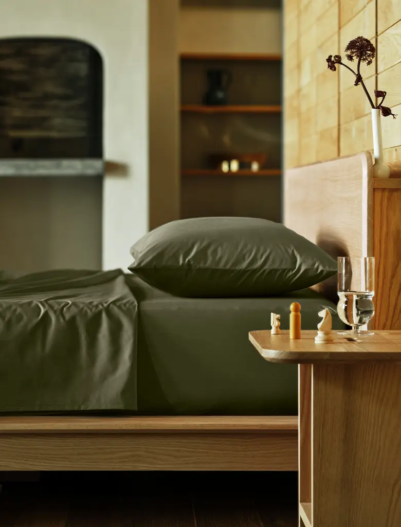 Made of the finest percale with a 200 thread count, these crisp, clean sheets have a subtle matte finish. Mix and match with the DWR Percale Sham (sold separately). Machine wash warm and tumble dry. Made in Turkey.
