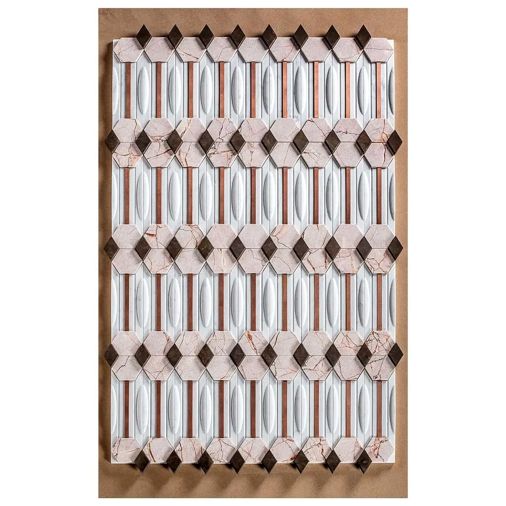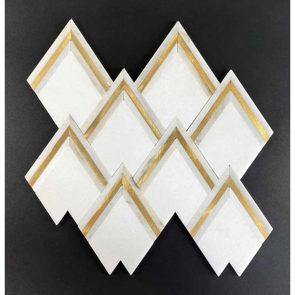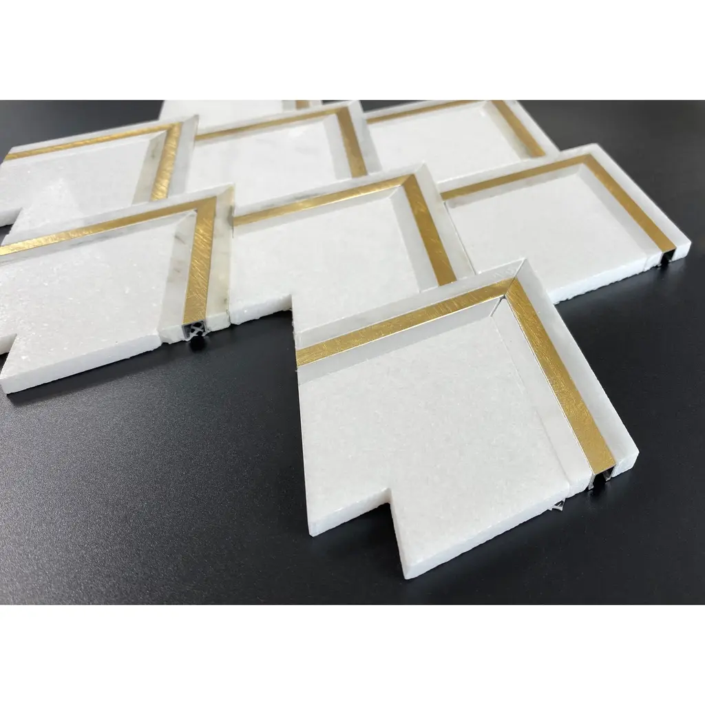 Diamond Marble And Metal Mosaic Tiles - Case (5 Sheets) - Case (5 Sheets) - Thassos White With Gold Metal