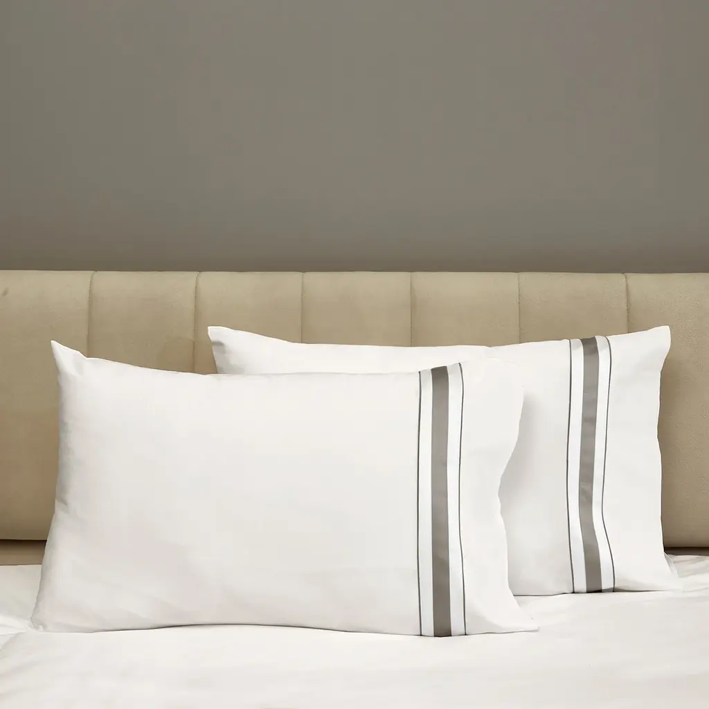 The Dimora Bedding Collection is made for those who love sensible luxury and clean lines. The color combination of applied borders and embroidered lines lends elegance and highlights the craftsmanship of these luxury Italian linens. *Sheets and pillowcases sold separately. Made in Italy of Sateen 300 t.c. using the finest and long-staple cotton threads.