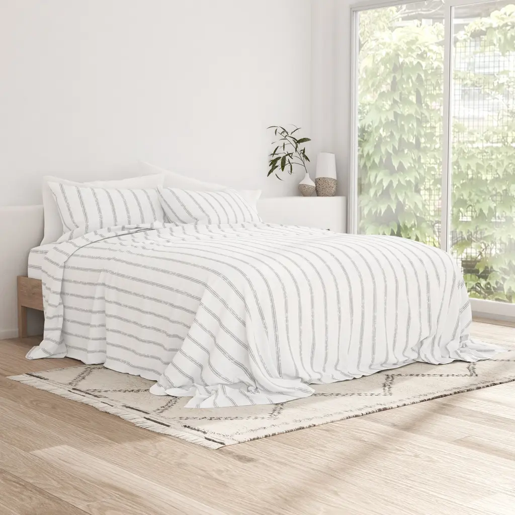 Our double-brushed patterned microfiber sheet set is super soft to the touch and wrinkle-resistant. We use premium yarns that are twice as durable as cotton, which means less risk of rips and wear. Naturally hypoallergenic, our sheets are ideal for sensitive skin and those with allergies. Available in a variety of unique designer prints and patterns, including florals, geometrics, and stripes, making it the perfect new addition to your room!