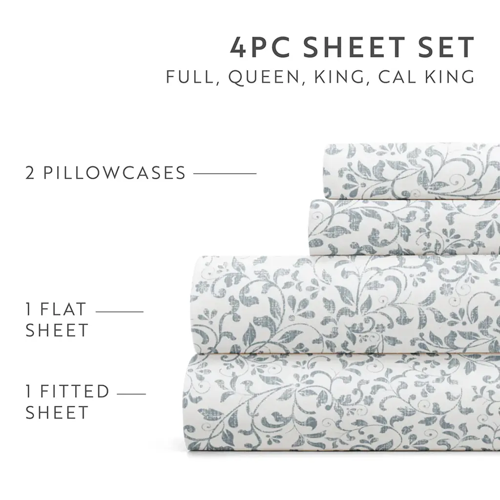 Our double-brushed patterned microfiber sheet set is super soft to the touch and wrinkle-resistant. We use premium yarns that are twice as durable as cotton, which means less risk of rips and wear. Naturally hypoallergenic, our sheets are ideal for sensitive skin and those with allergies. Available in a variety of unique designer prints and patterns, including florals, geometrics, and stripes, making it the perfect new addition to your room!