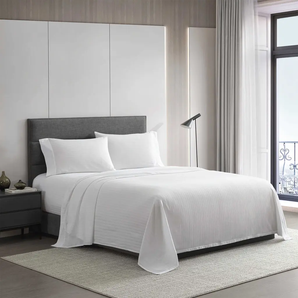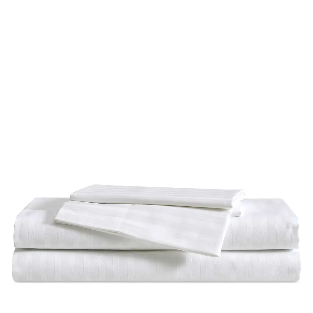 Add modern luxury to your master bedroom with the Dobby Stripe sheet set from Vera Wang. This luxurious cotton blend is available in a brown clay or pale gray colorway. Each sheet set is soft to the touch and wrinkle resistant.