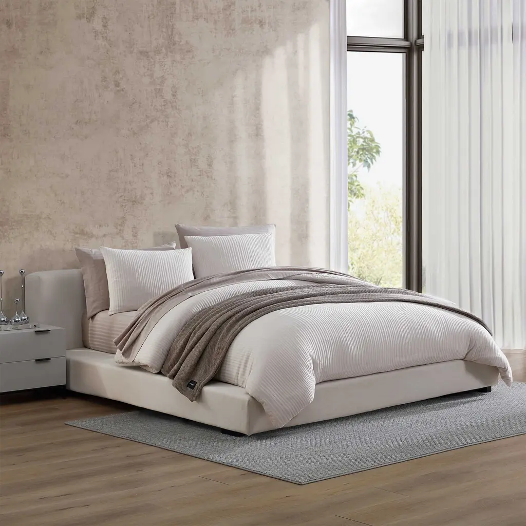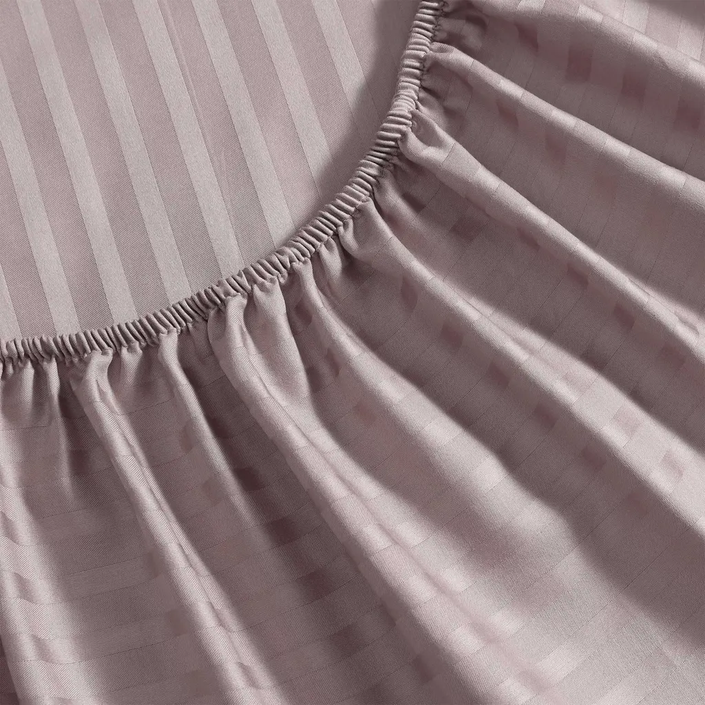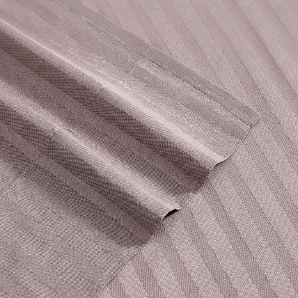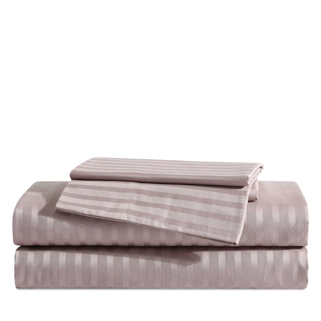 Add modern luxury to your master bedroom with the Dobby Stripe sheet set from Vera Wang. This luxurious cotton blend is available in a brown clay or pale gray colorway. Each sheet set is soft to the touch and wrinkle resistant.