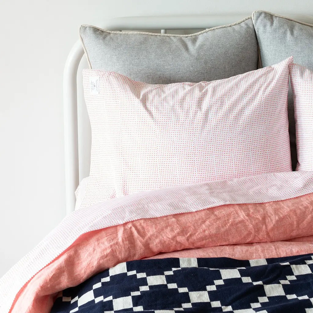 Designed in collaboration with Egg Press, one of Portland's most revered letterpress studios, our premium Dot Collection reveals a delicate pattern of hand-painted dots intentionally left imperfect for quiet simplicity. Crafted from cotton percale , the tightly woven fibers provide long-lasting durability with a soft, luxurious feel. Special details include a hand-stitched label. Mix and match with any of our duvet covers or shams for unexpected yet effortless pairings. A Schoolhouse Exclusive.