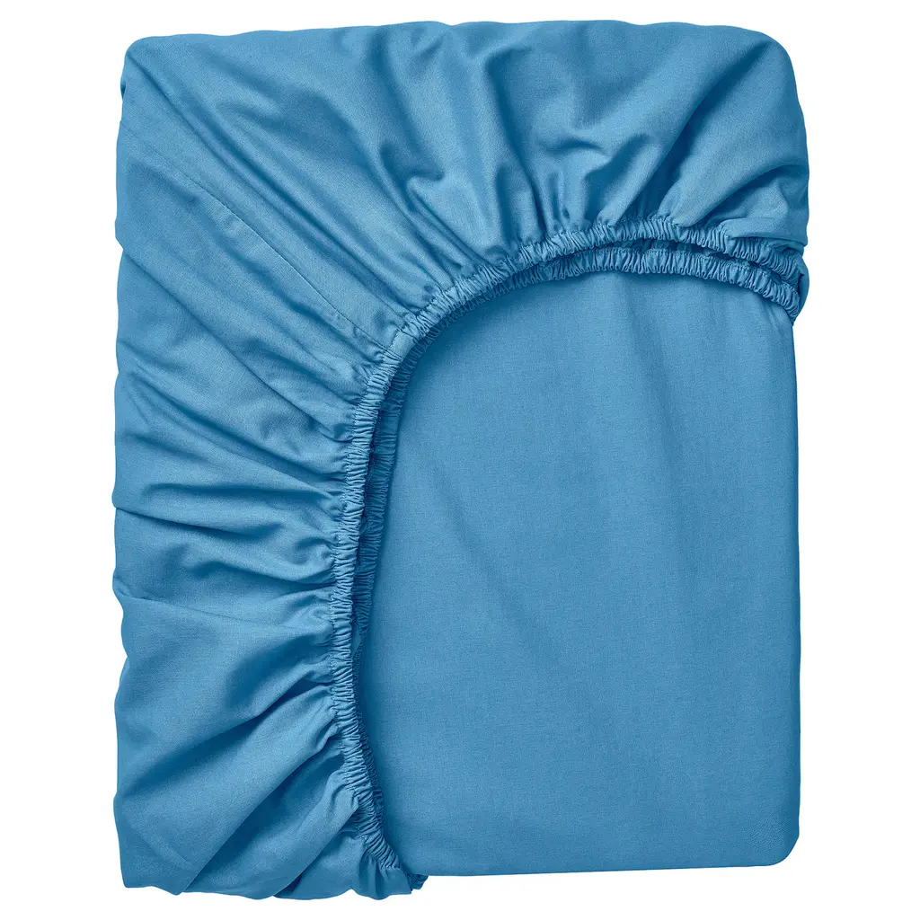 DVALA Fitted sheet - blue Twin. Made of 100% cotton - a natural and durable material that becomes softer with every wash. Cotton is a soft, natural material that breathes, absorbs moisture and feels comfortable against your skin. 152 thread count.