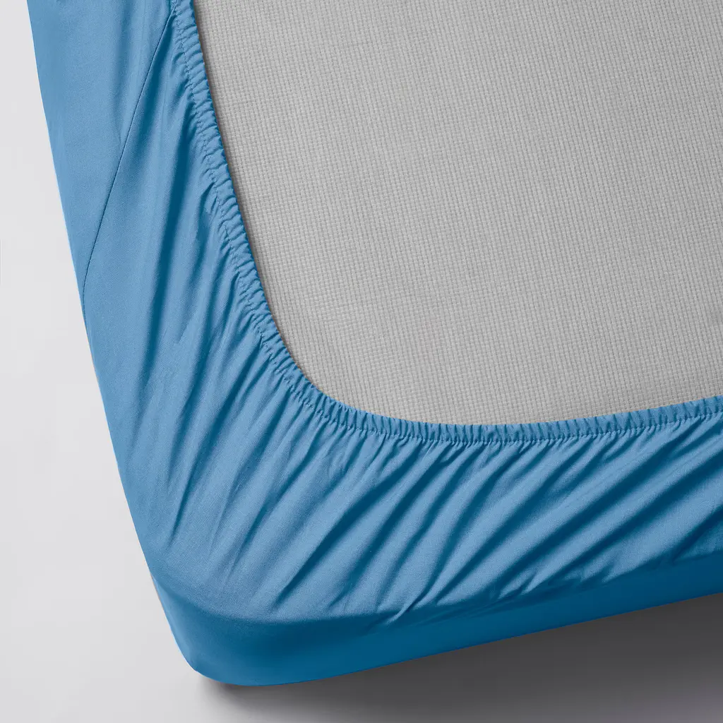 DVALA Fitted sheet - blue Twin X-long. Made of 100% cotton - a natural and durable material that becomes softer with every wash. Pure cotton that feels soft and nice against your skin. Fits mattresses with a thickness up to 10" since the fitted sheet has elastic edging all around. 152 thread count.