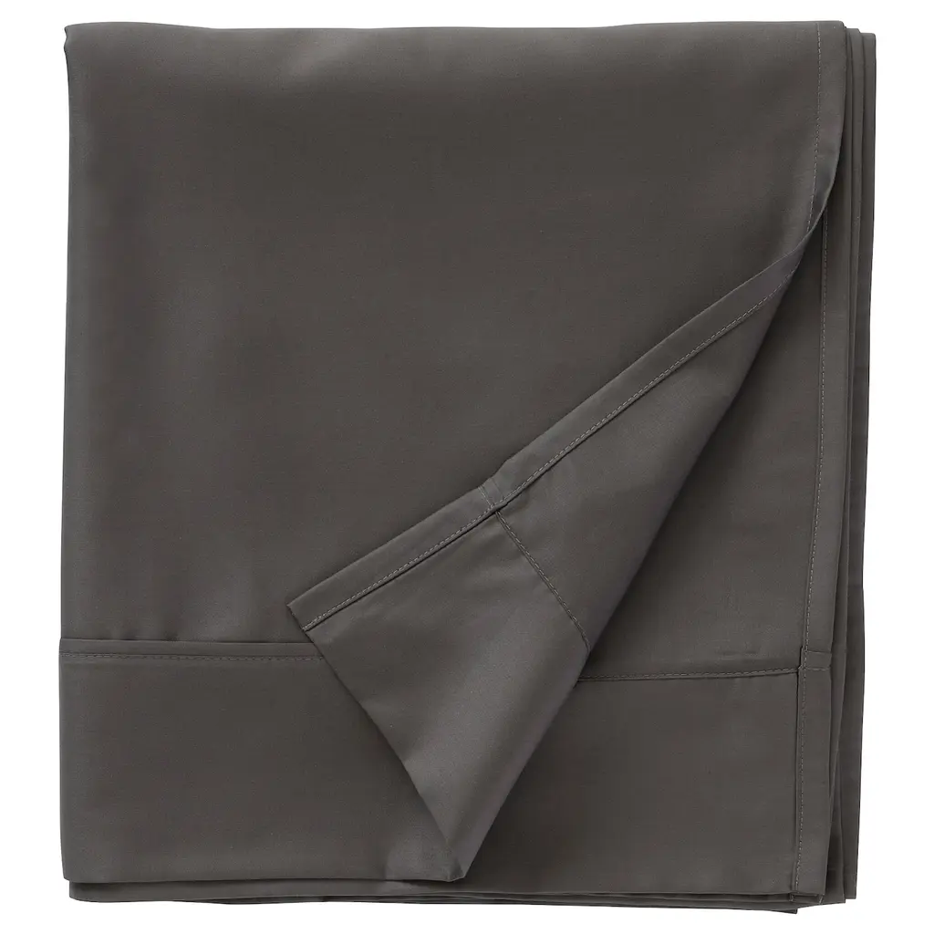 DVALA Flat sheet - gray-green Queen. Pure cotton that feels soft and nice against your skin. Made of 100% cotton - a natural and durable material that becomes softer with every wash. 152 thread count.