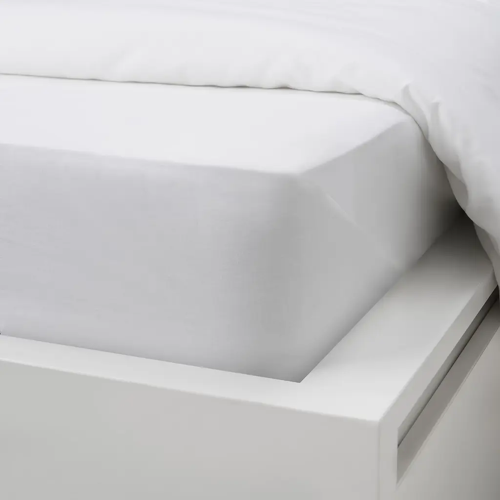 DVALA Sheet set - white Queen. The fitted sheet fits mattresses with a thickness up to 25 cm since the fitted sheet has elastic edging all around. Made of 100% cotton - a natural and durable material that becomes softer with every wash. Thread count: 60 threads/cm² or 152 threads/inch².