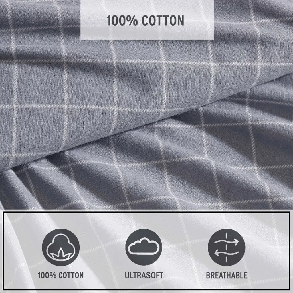 Experience all-night comfort with a new Eddie Bauer cotton flannel sheet set. Constructed with 100% cotton, these sheets are brushed to create a cozy texture that is perfect for the colder winter months. Eddie Bauer flannel sheets Soften with every wash and feature construction that is breathable, pills less and lasts longer. Available in a variety of bold patterns and colors, these sheets are designed to match and enhance any bedroom décor. The sheet set includes one flat sheet, one fitted sheet, and two pillowcases (one for twin sizes). Sets contain a fully elasticized fitted sheet to prevent slipping from your mattress and ensure a perfect fit. Sheets are deep pocket- and fit mattresses up to 18” (up to 15” for twin sizes). Sets are available in multiple sizes and are the perfect complement to your favorite Eddie Bauer bedding. Flannel sheets are preshrunk and machine washable for easy care.
