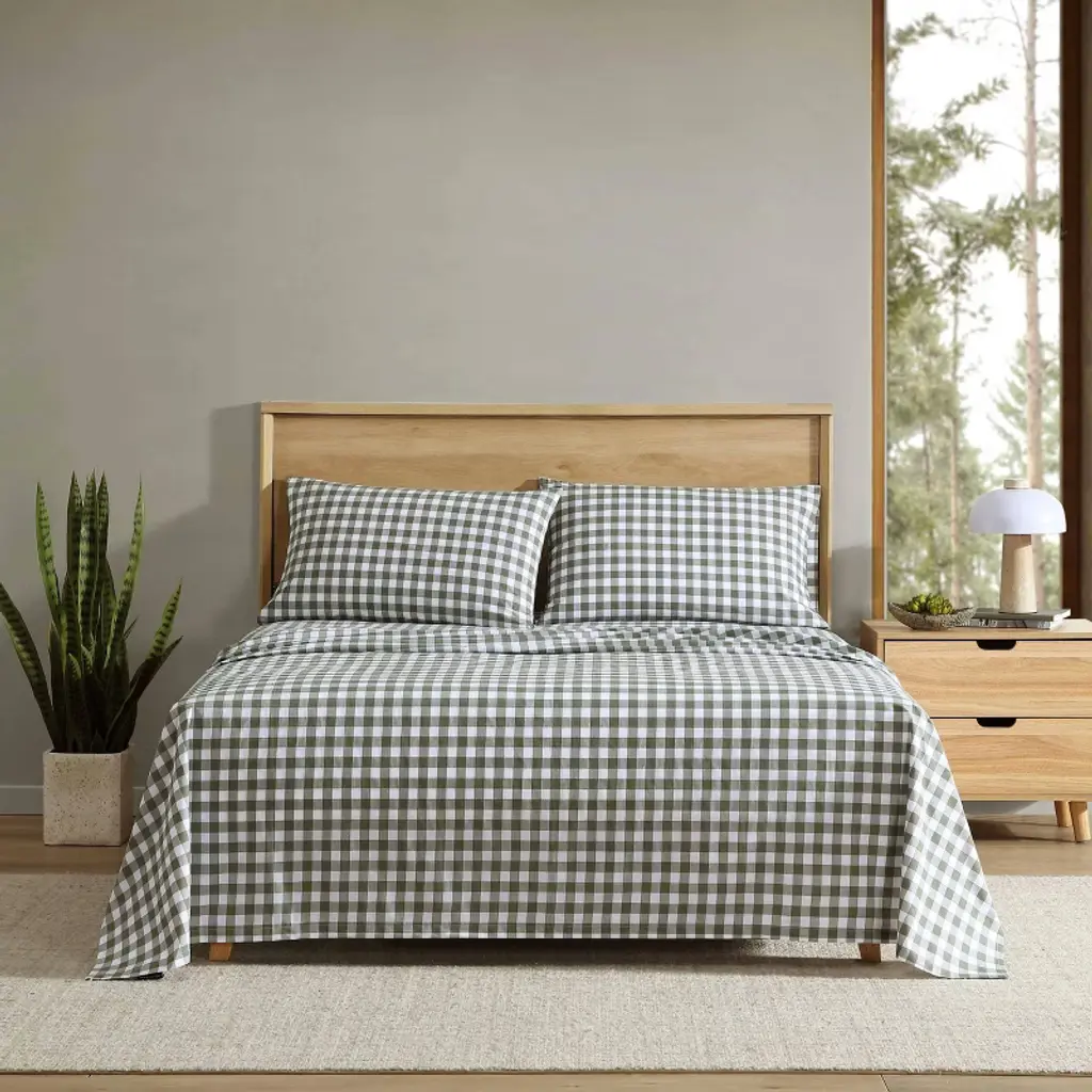 Eddie Bauer cotton percale sheet sets offer a smooth feel thanks to their single-ply percale weave, making them a lightweight and breathable choice for year-round comfort. Sheet sets are available in a wide variety of prints and patterns, offering something for every style. From classic plaids and outdoor motifs to subtle stripes and nature-inspired designs, there's a look to suit any bedroom décor. These distinctive patterns reflect Eddie Bauer’s signature blend of comfort and rugged charm. Designed with practicality in mind, the fitted sheets feature a 15" pocket depth (12" for twin size) and are capable of fitting mattresses up to 18" deep (15" for twin), ensuring a secure fit. Easy to care for, the entire set is machine washable, combining everyday convenience with Eddie Bauer’s signature quality.