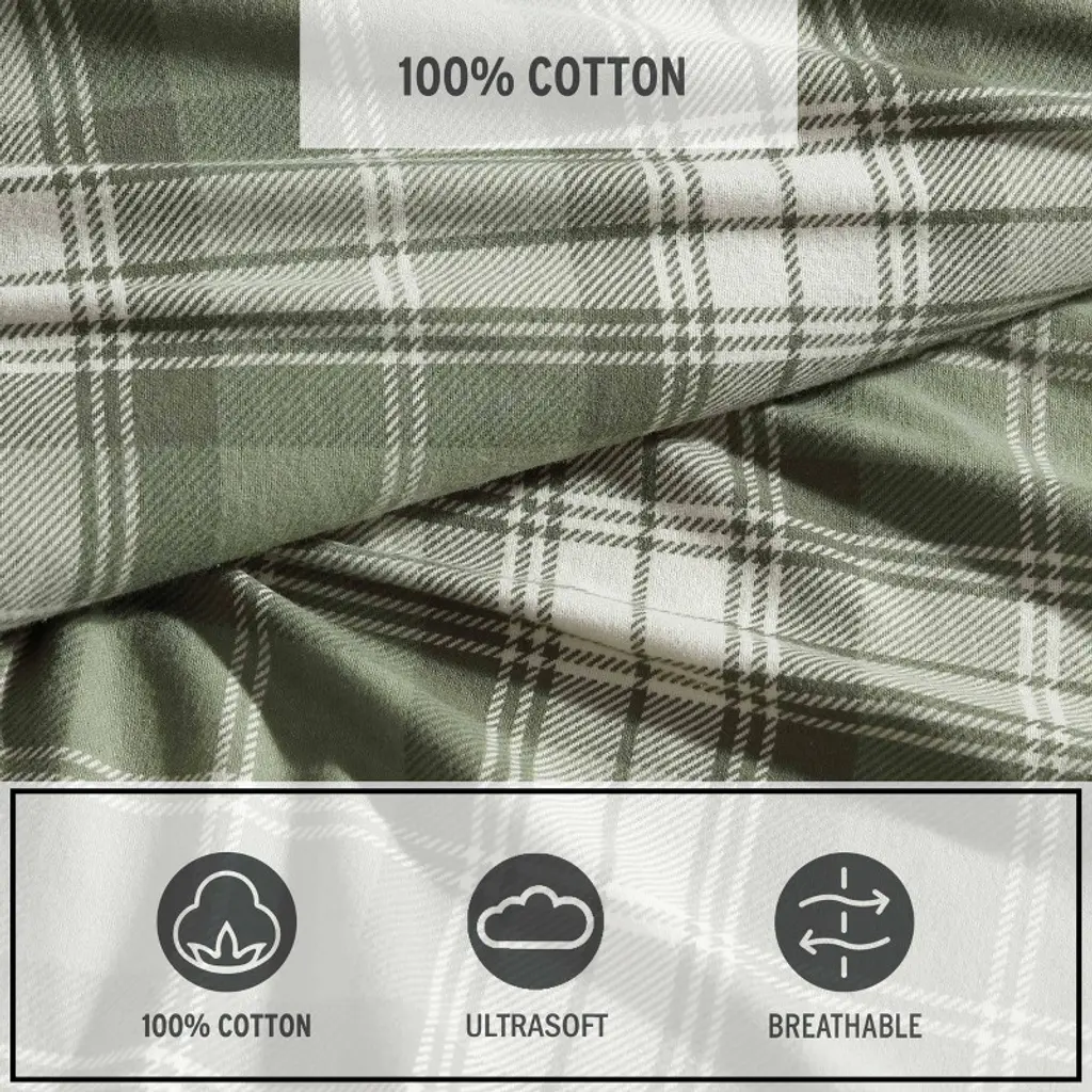 Experience all-night comfort with a new Eddie Bauer cotton flannel sheet set. Constructed with 100% cotton, these sheets are brushed to create a cozy texture that is perfect for the colder winter months. Eddie Bauer flannel sheets Soften with every wash and feature construction that is breathable, pills less and lasts longer. Available in a variety of bold patterns and colors, these sheets are designed to match and enhance any bedroom décor. The sheet set includes one flat sheet, one fitted sheet, and two pillowcases (one for twin sizes). Sets contain a fully elasticized fitted sheet to prevent slipping from your mattress and ensure a perfect fit. Sheets are deep pocket- and fit mattresses up to 18” (up to 15” for twin sizes). Sets are available in multiple sizes and are the perfect complement to your favorite Eddie Bauer bedding. Flannel sheets are preshrunk and machine washable for easy care.