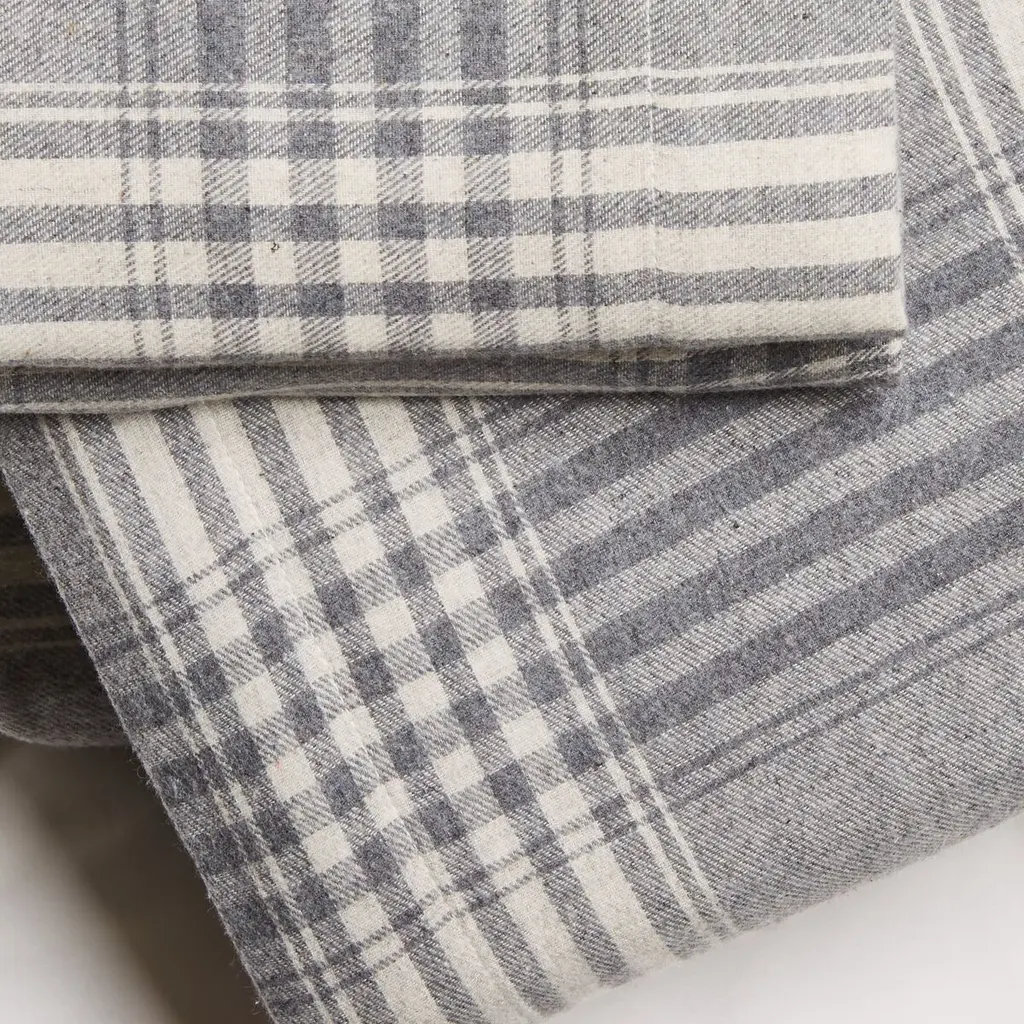 Made from a blend of soft cotton and cotton fibers in a gray-and-white plaid pattern, this flannel sheet set is ideal for keeping cozy in the colder months. The flannel fabric is brushed four times per side and sulfurized to ensure softness and durability. Fitted sheet fits mattresses up to 18"D.