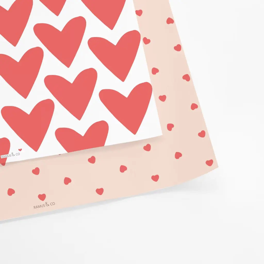 Eight Sheets Two-sided "Hearts" Heavyweight Gift Wrap By Ramus & Co