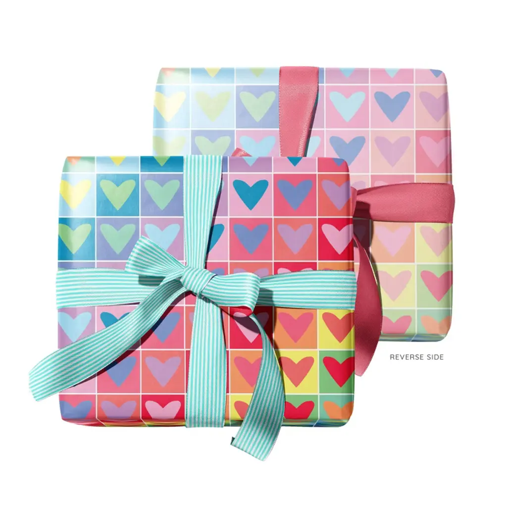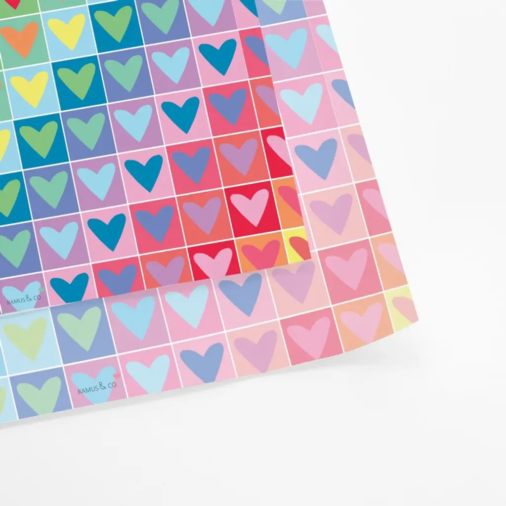 Eight Sheets Two-sided "Rainbow Hearts" Heavyweight Gift Wrap By Ramus & Co
