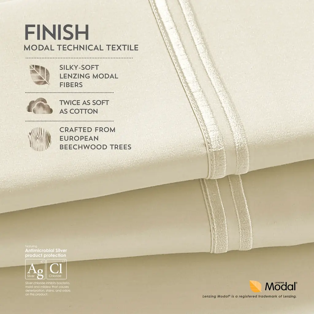 The Elements Modal sheet set is ready and waiting to give you true comfort while you sleep. Featuring a super-soft sateen woven blend of Lenzig™ Modal fibers and premium long-staple cotton, these sheets are made for luxurious relaxation. Like all Elements bed sheets, the Modal option has an 8" enveloping pocket in the pillowcase(s), a 1" Precision-Fit™ elastic cuff on the fitted sheet, and an additional 4" of material on the flat sheet. Plus, all Elements products have antimicrobial properties to inhibit the growth of bacteria, mold, and mildew. Enjoy the Elements Modal bedsheets and get a great night's sleep.