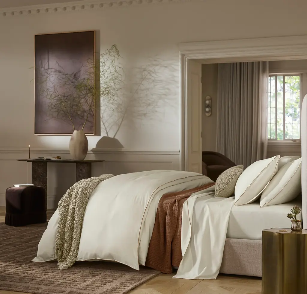 Experience a feeling that's otherworldly: the singularly delicate touch of cashmere with the finest organic Turkish cotton on earth. Our Elysian Cotton Cashmere is crafted with our coziest weave, then brushed and washed, creating a warm, breathable, and indulgently soft experience. Finished with a tonal merrowed edge, this Sheet Set transforms your bed into a elegant haven of indulgence. The Feel Delicate softness with a breathable warmth The Look Endlessly elegant with refined embellishment