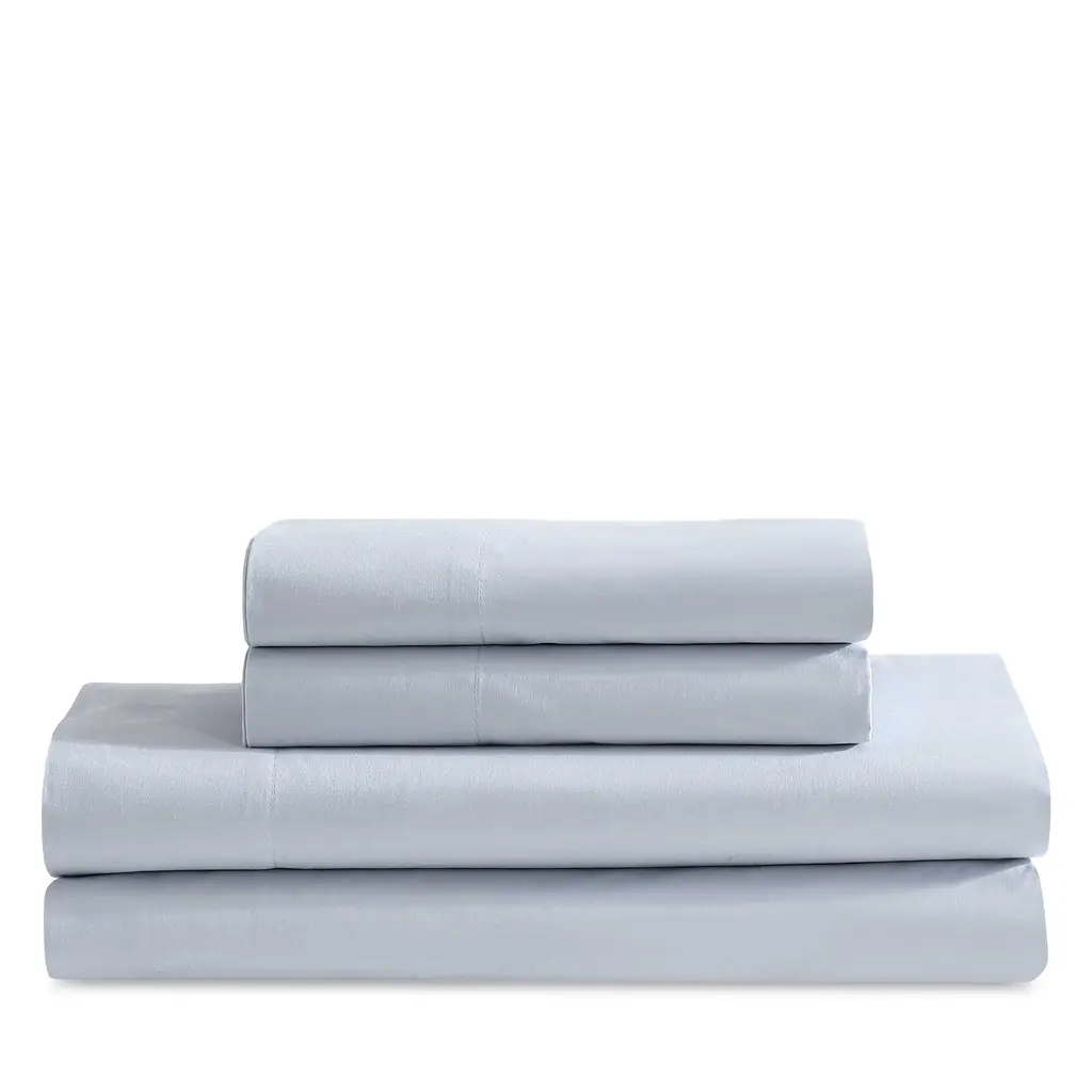 Crafted from long-staple cotton, this Calvin Klein solid sheet set offers exceptional quality with a smooth, breathable feel. A cooling treatment woven directly into the fabric enhances comfort throughout the night.