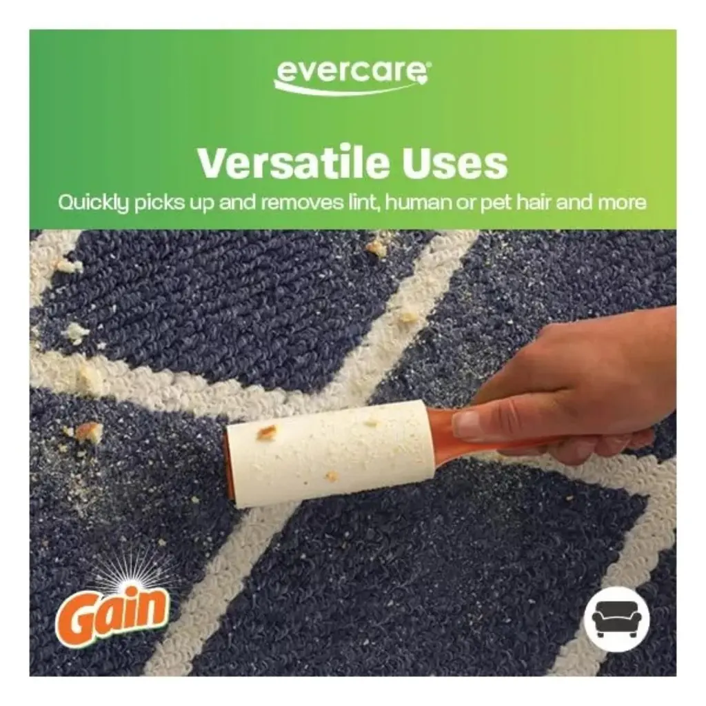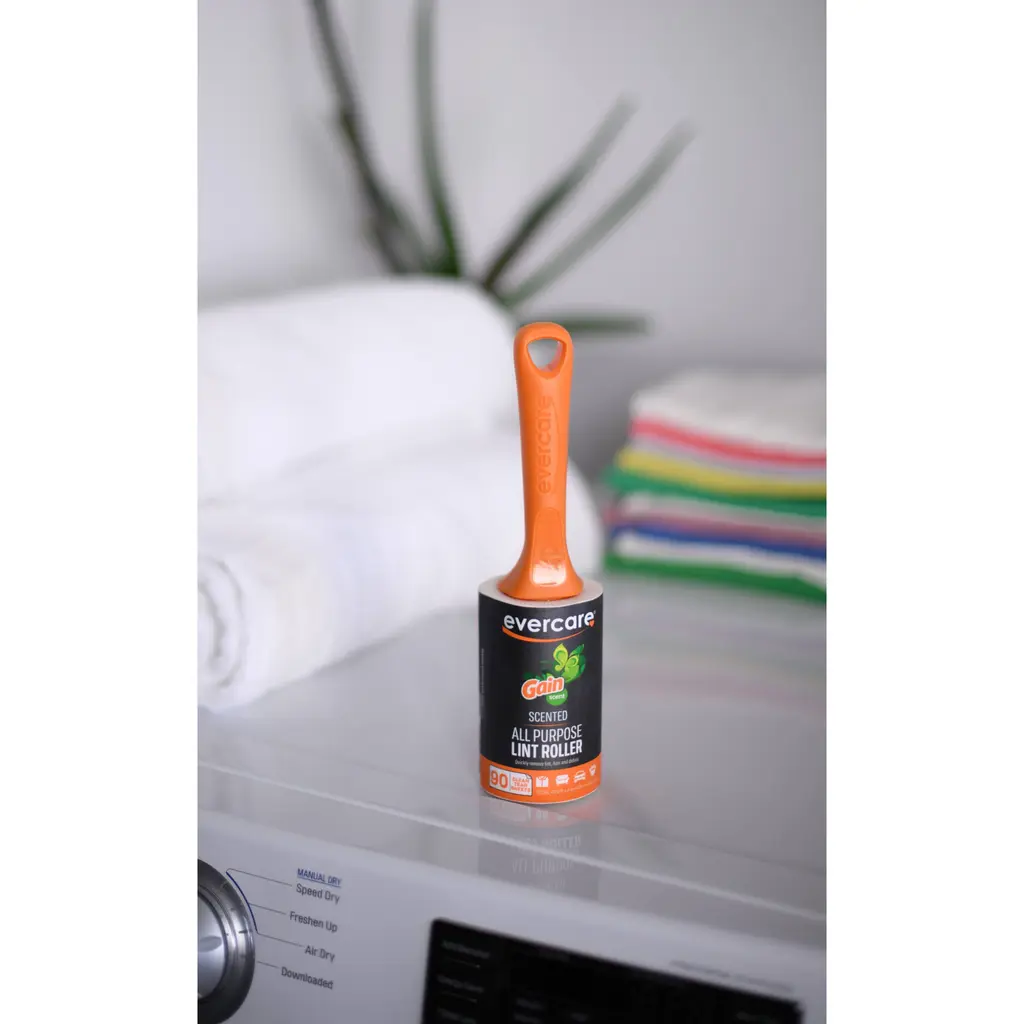 Evercare Gain Scented All-Purpose Travel Lint Rollers, 30 Sheets - NewKeep your household and clothing fabrics clean, lint-free, and pleasant smelling with the Evercare All-Purpose Lint Rollers with Gain Scent. The extremely sticky adhesive high-quality lint sheets offer more pickup with each pass to quickly remove lint, human or pet hair, debris, and more from furniture, clothing, and a variety of surfaces, and they pull off smoothly with no waste. In addition, these lint removers are also great for picking up little arts and crafts pieces, food crumbs, and other small messes. With an elegant fragrant Gain scent woven into the clean-tear sheets, your clothes and fabrics will be left smelling great after cleaning. Keep them at home, in the office, in the car, or bring them for travelling and on-the-go use. Ergonomically designed, the contoured grip handle fits in your hand securely for comfort and control during both quick touch-ups and larger heavy-duty cleaning projects, and it features an integrated hanging hole for easy storage. At Evercare, we believe that products do more than perform a function, they must look great. Detailed in the design, we combine right materials, better function with sleek styling quality materials. The results are solutions that make your life easier and create a better you. Our goal is creating products that utilize the best technologies to make your life better.FEATURES:COLOR:OPERATION MODE:WHAT'S IN THE BOX:PACKAGING: Retail Packaging