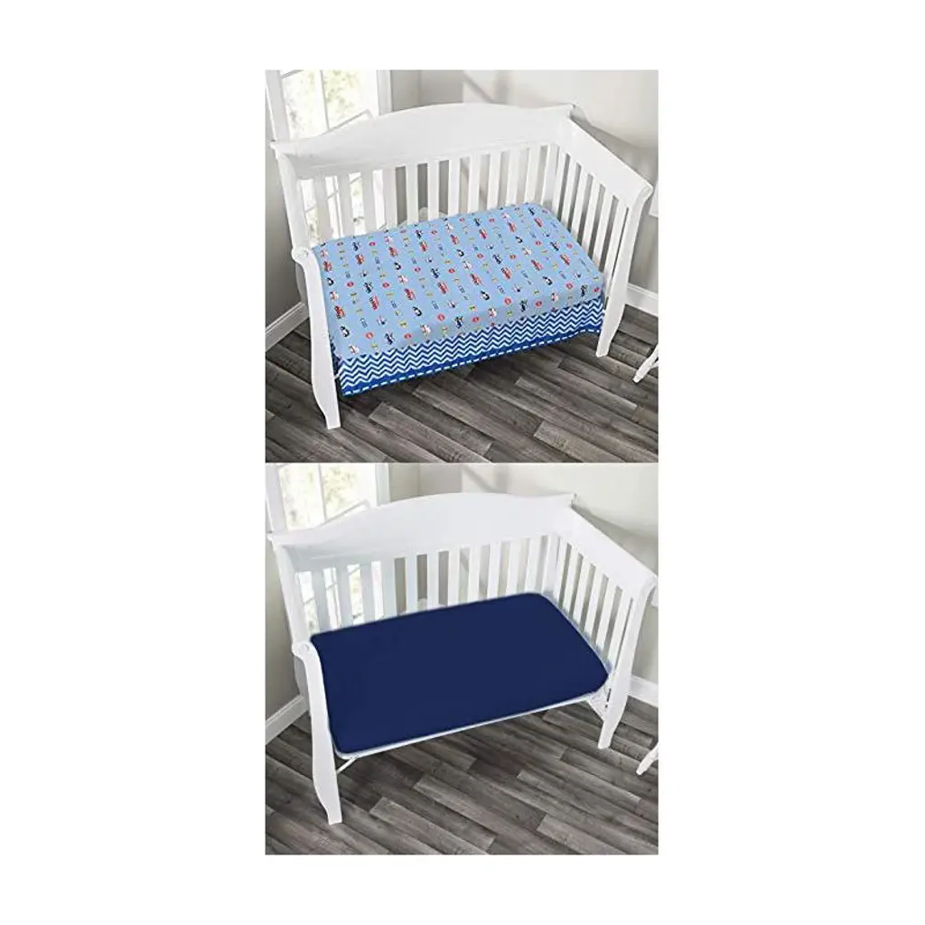 Everyday Kids 2-pack Fitted Crib Sheets For Boys, Soft Microfiber, Fits 28"x52" Mattress, Rescue And Blue Designs For Nursery