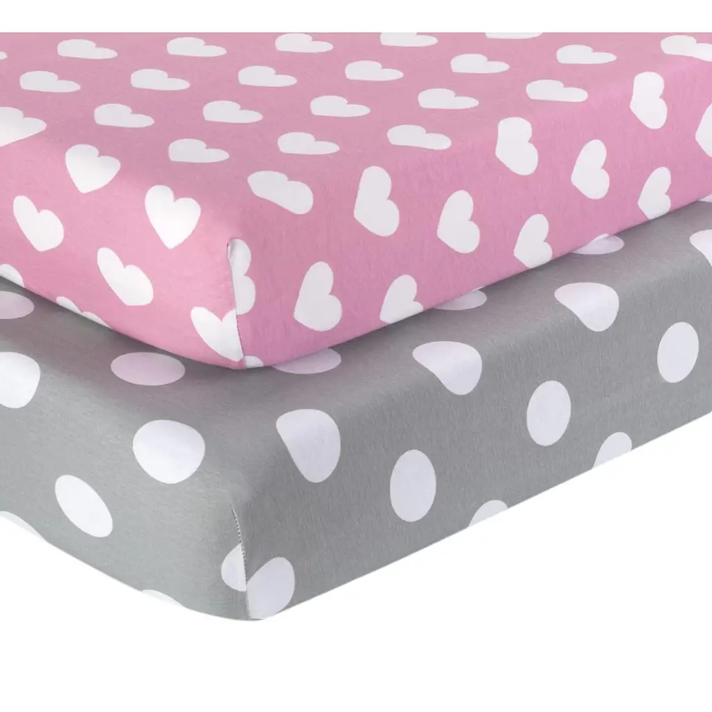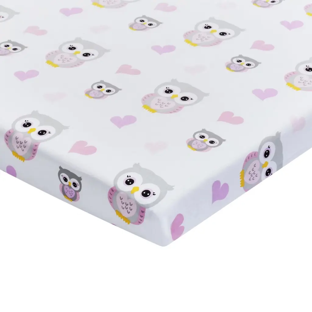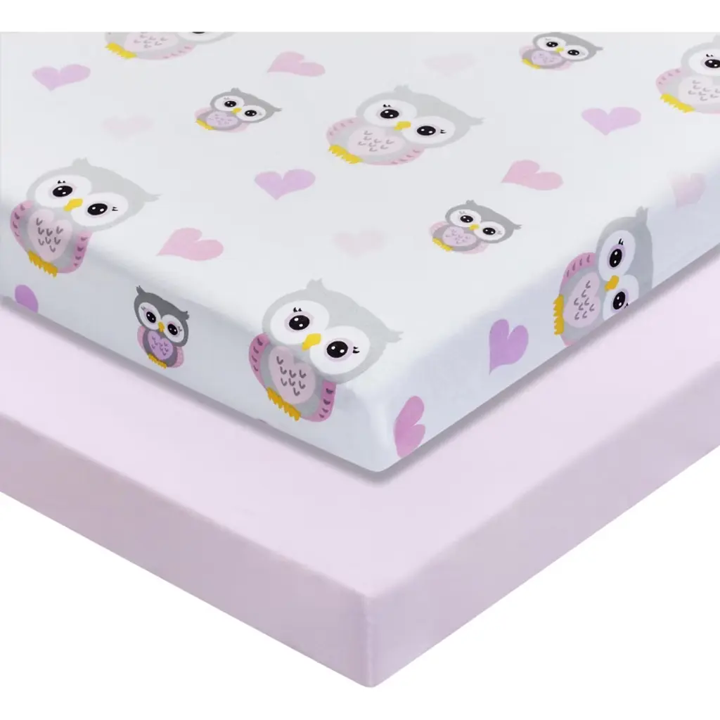 Everyday Kids 2-pack Pack 'N Play Sheets, 100% Cotton, Owls/hearts & Pink, Soft Fitted Sheets For Portable Crib Or Mini Crib
