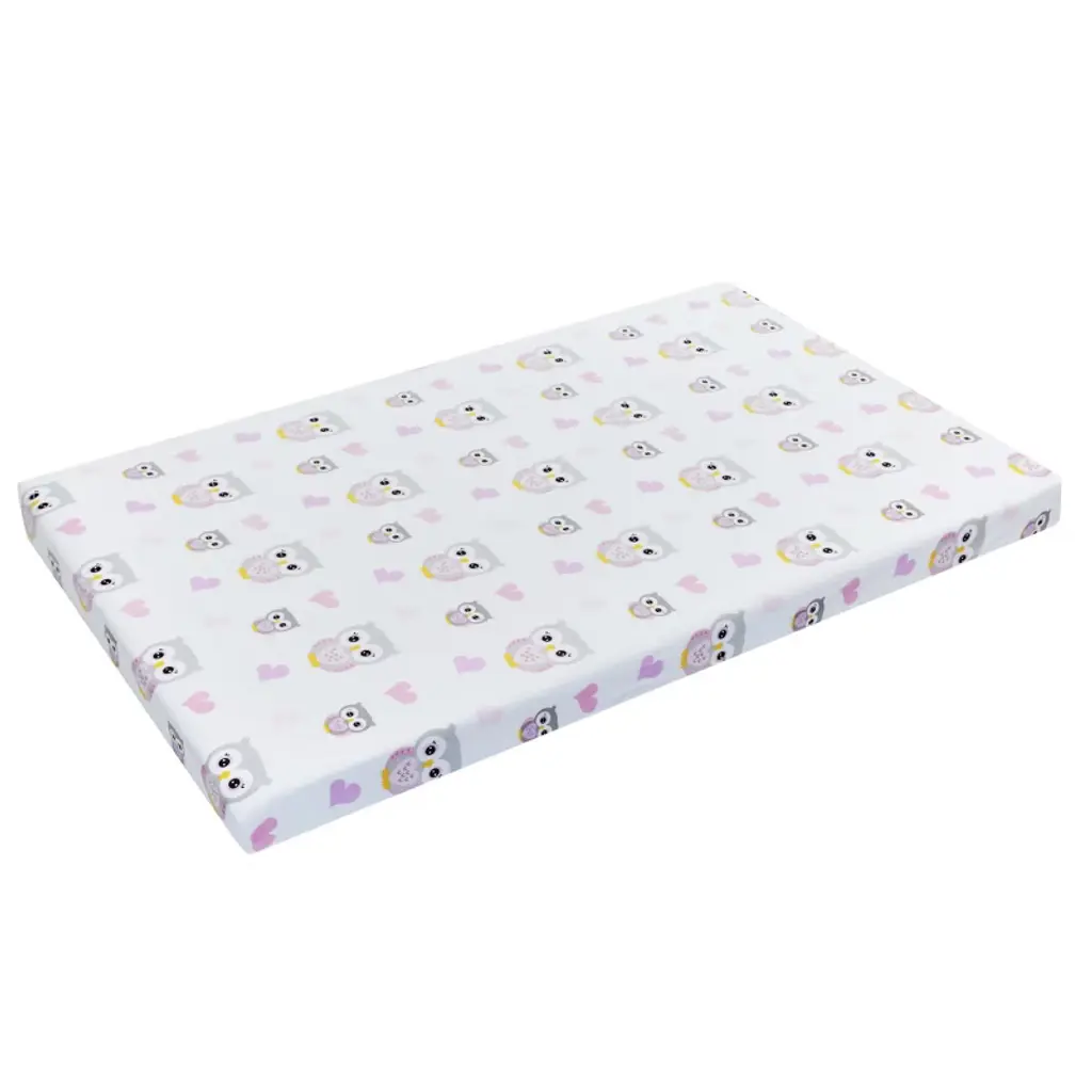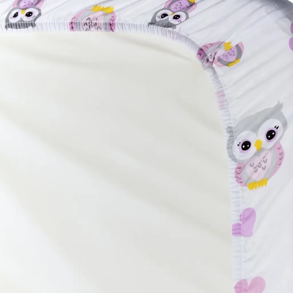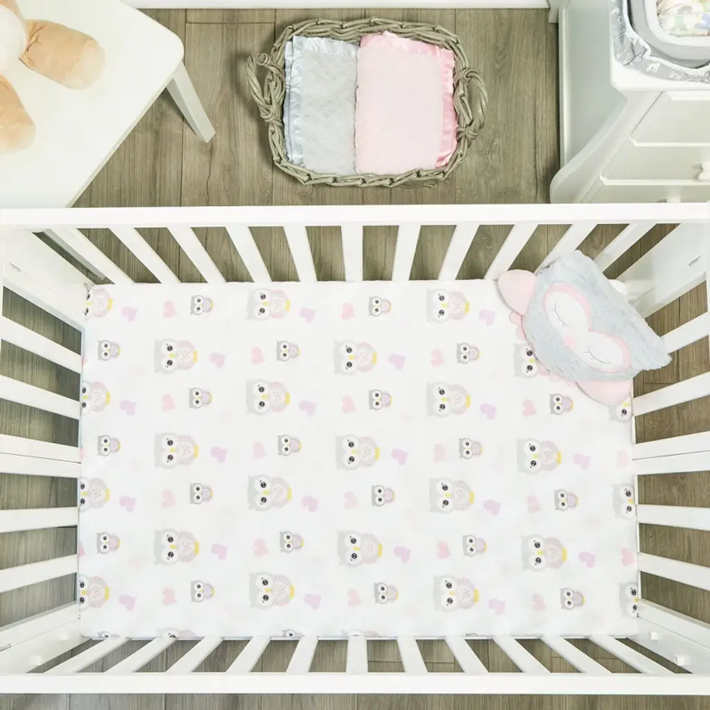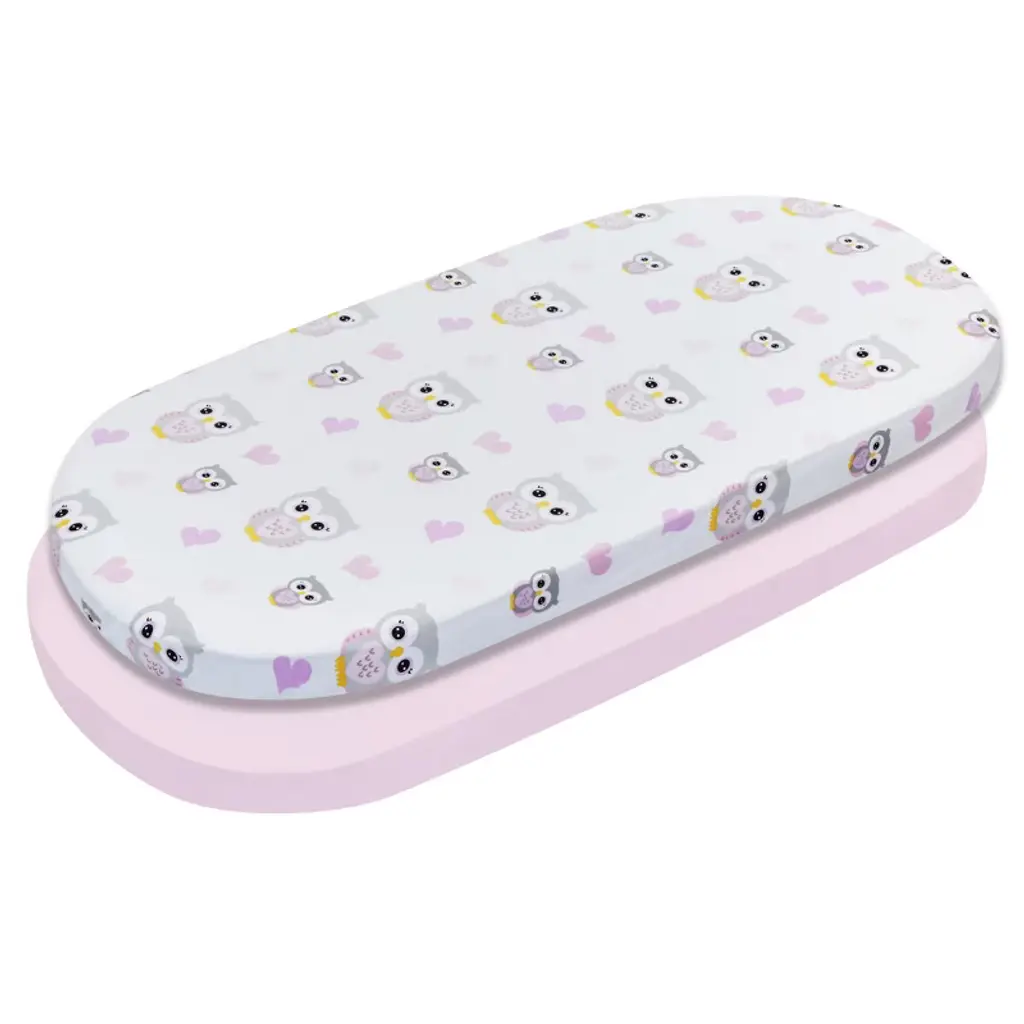 Everyday Kids 2-pack Pack 'N Play Sheets, 100% Cotton, Owls/hearts & Pink, Soft Fitted Sheets For Portable Crib Or Mini Crib