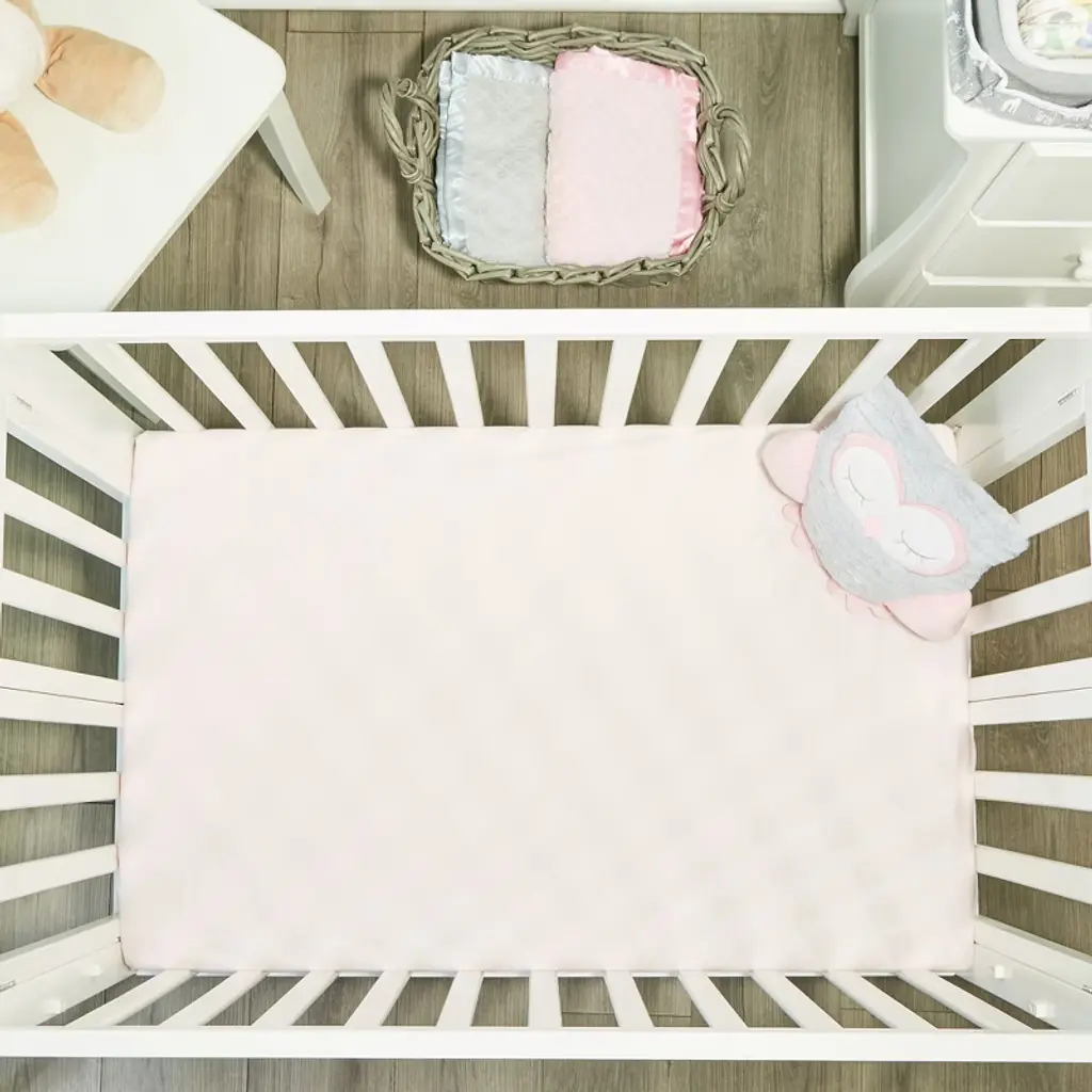 These fitted sheets are designed for portable cribs, as well as pack and play, playard or playpen mattress or pads. Each sheet is fitted and measures 24" by 38" with a 5" deep pocket. This mommy/baby owl with hearts sheet set in pretty colors of gray and pink are a set you’ll love not only for the precious pattern, but also the supreme comfort and softness, all designed to help babies sleep better.