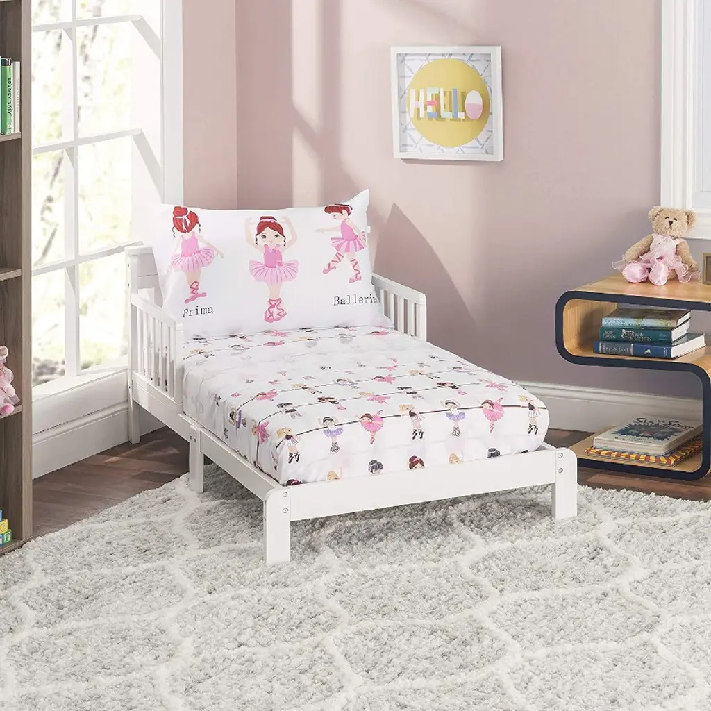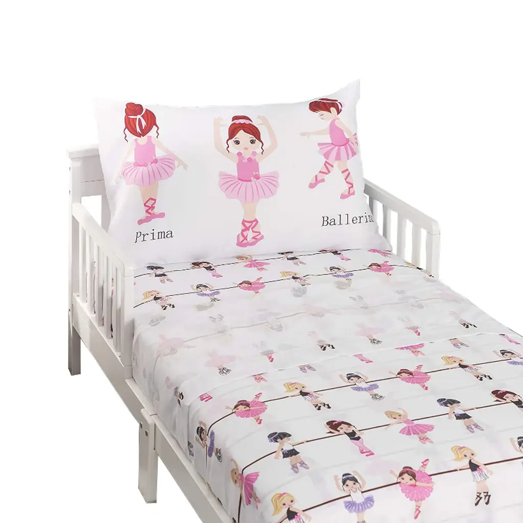 Everyday Kids 3-piece Toddler Fitted Sheet, Flat Sheet And Pillowcase Set - Born To Dance Ballerina - Soft Breathable Microfiber Toddler Sheets Set