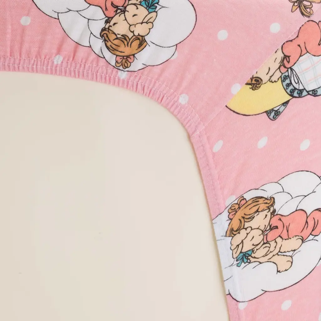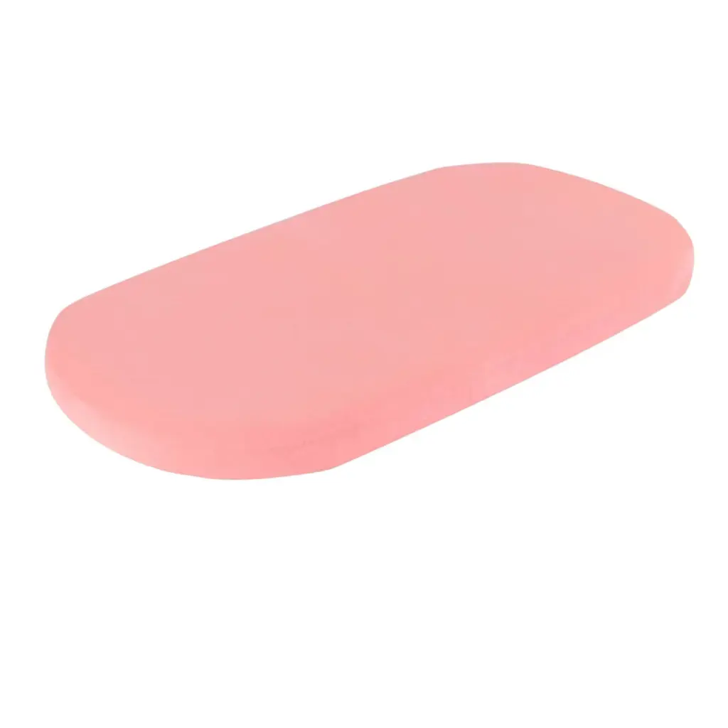 Our bassinet sheets are designed to fit almost every bassinet mattress pad! It completely surrounds the rounded edges of the oval shaped pad and lies smooth. Each sheet is fitted and measures 16" by 32" with a 4" deep pocket. With the pink and yellow Precious Moments design on one sheet and a solid pink sheet, you’ll love how they complement your baby’s layette.