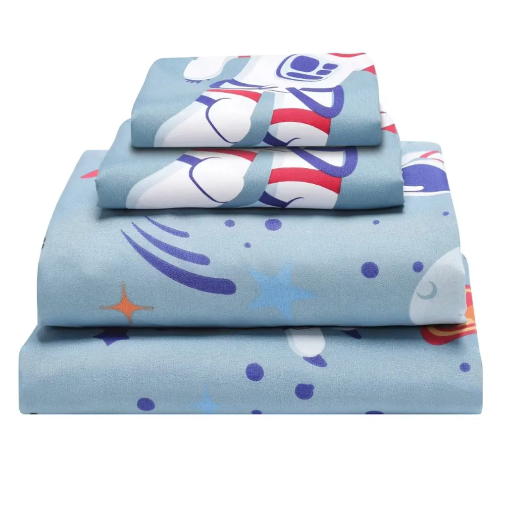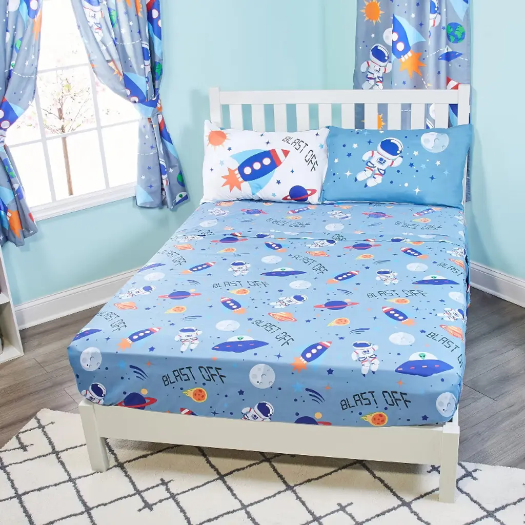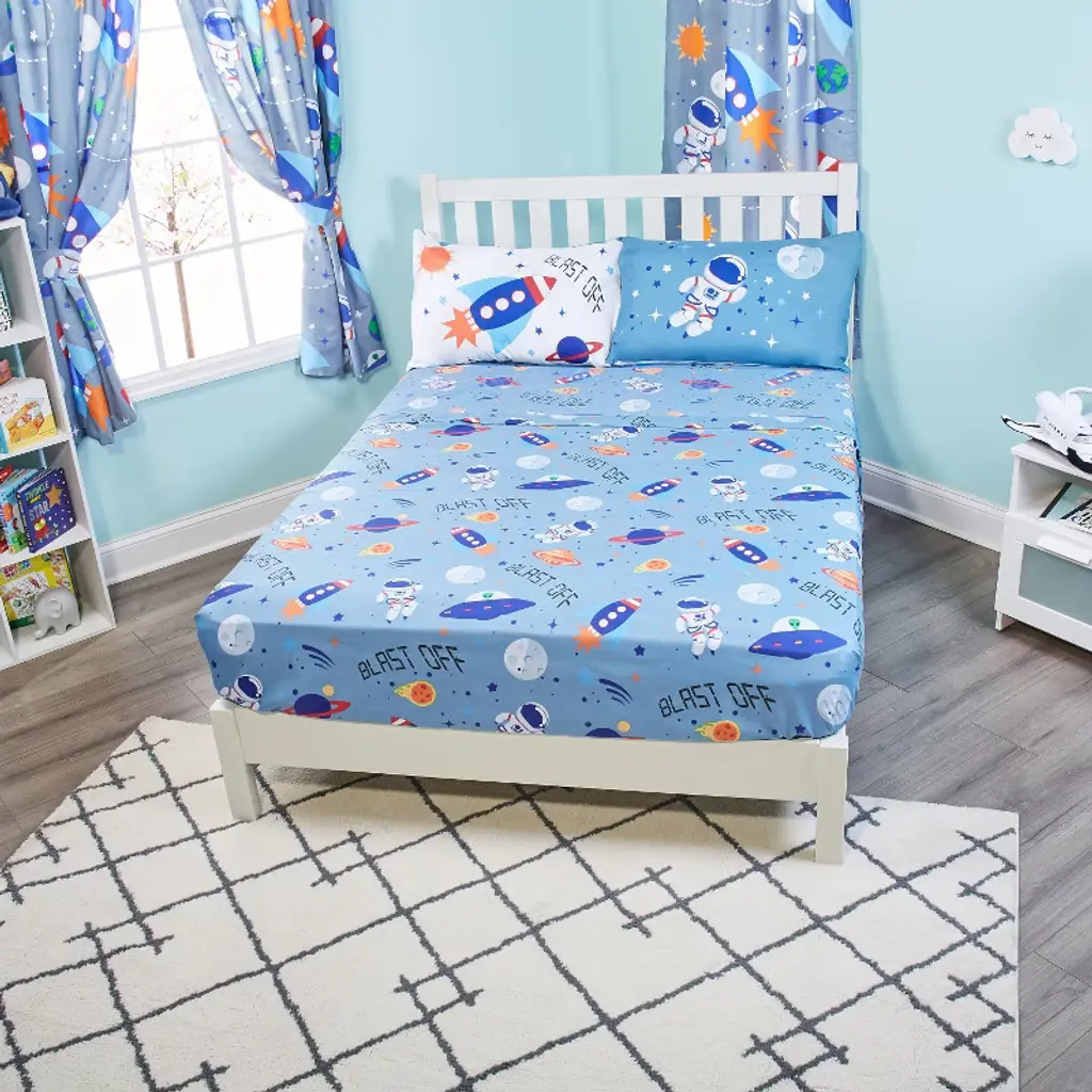 Everyday Kids Blast Off In Outer Space Twin Size Bed Sheet Set 3-piece Twin Size Sheets Set Includes Flat Sheet, Fitted Sheet And Pillowcase