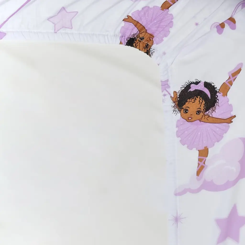 Everyday Kids Toddler Fitted Sheet And Pillowcase Set - Ballerina - Soft Breathable Microfiber Toddler Sheet Set