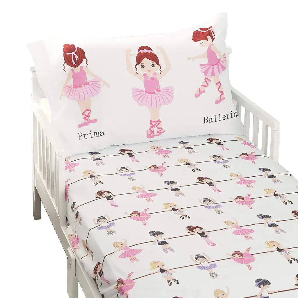 Everyday Kids Toddler Fitted Sheet And Pillowcase Set -Born To Dance Ballerina- Soft Microfiber, Breathable And Hypoallergenic Toddler Sheet Set