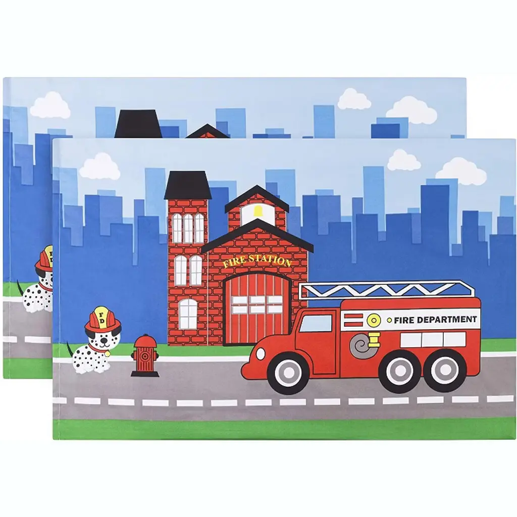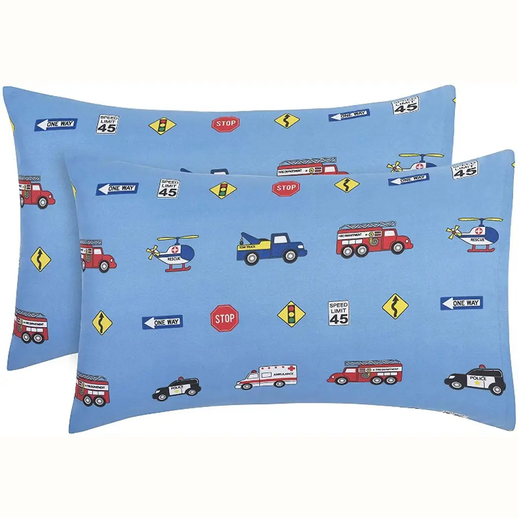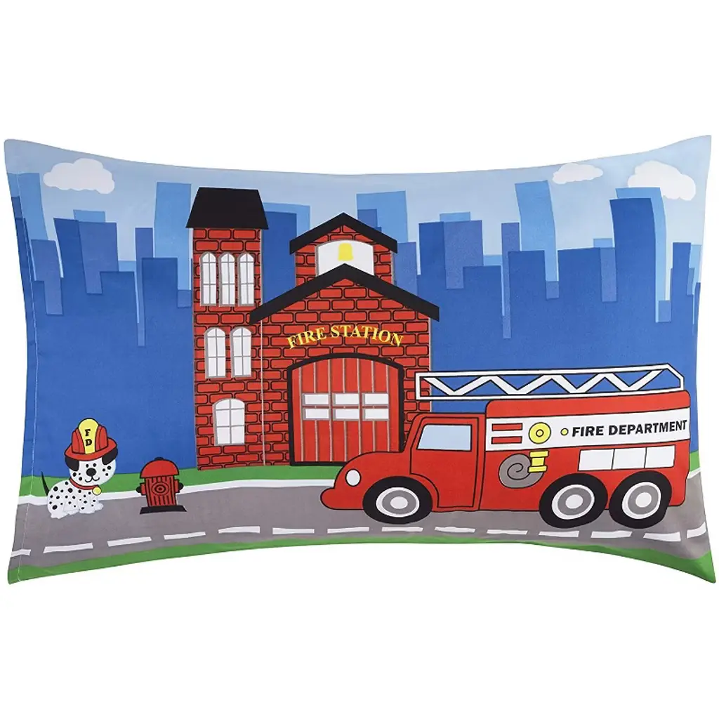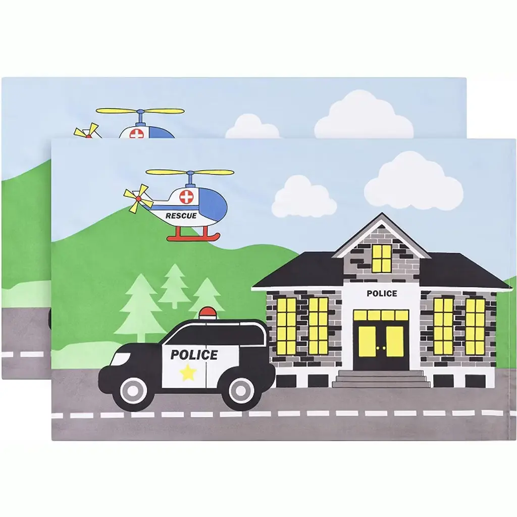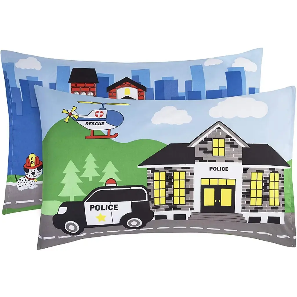 Everyday Kids Toddler Fitted Sheet And Pillowcase Set -Fire Police Rescue- Soft Breathable Microfiber Toddler Sheet Set