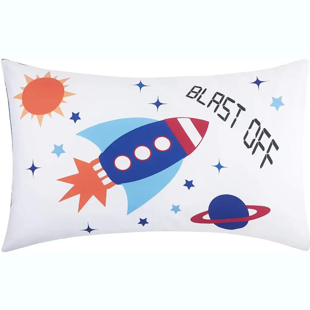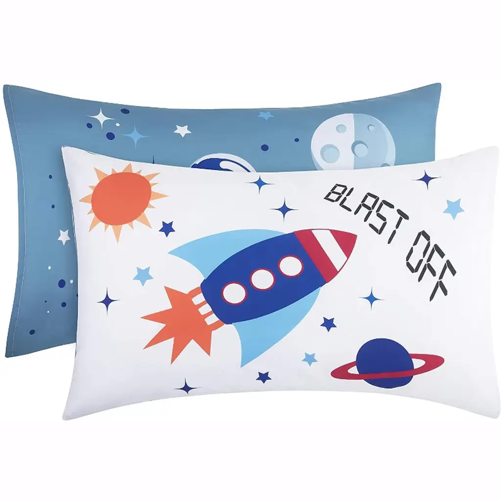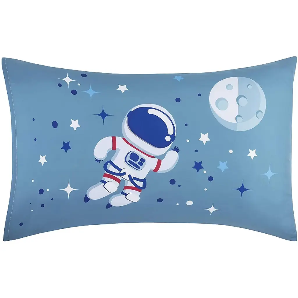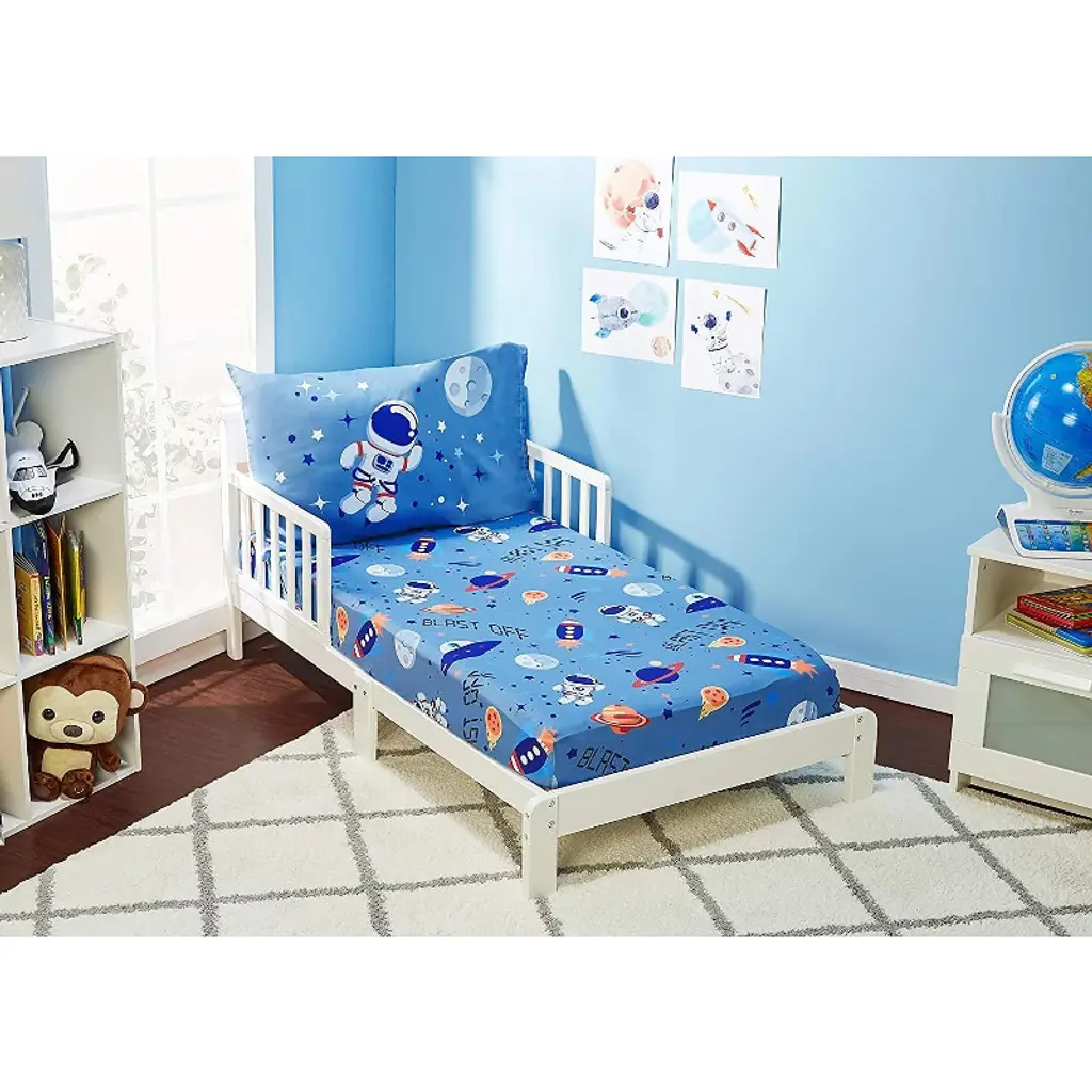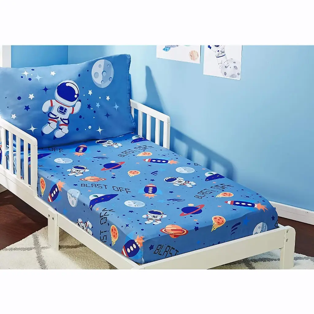 Everyday Kids Toddler Fitted Sheet And Pillowcase Set - Outer Space Adventures - Soft Breathable Microfiber Toddler Sheet Set
