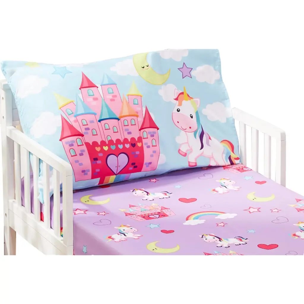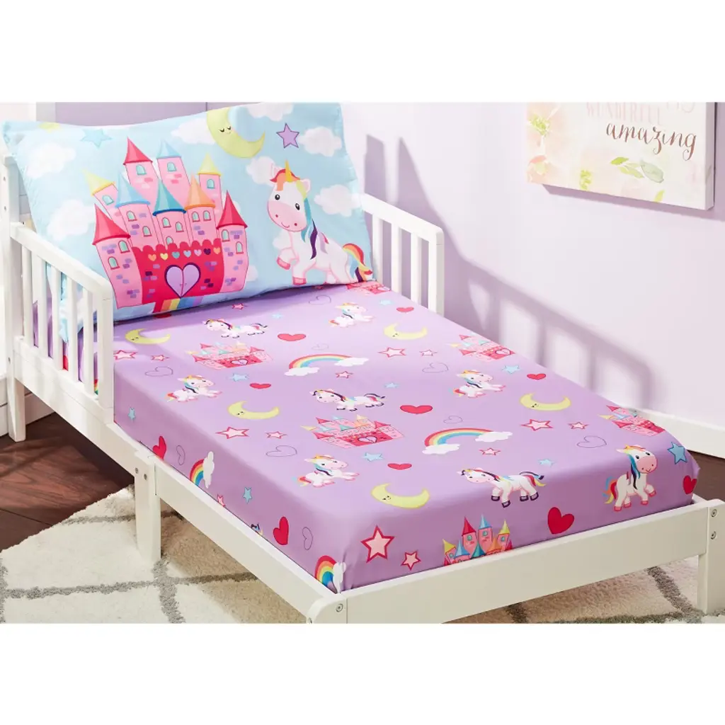 Everyday Kids Toddler Fitted Sheet And Pillowcase Set - Unicorn Dreams - Soft Breathable Microfiber Toddler Sheet Set