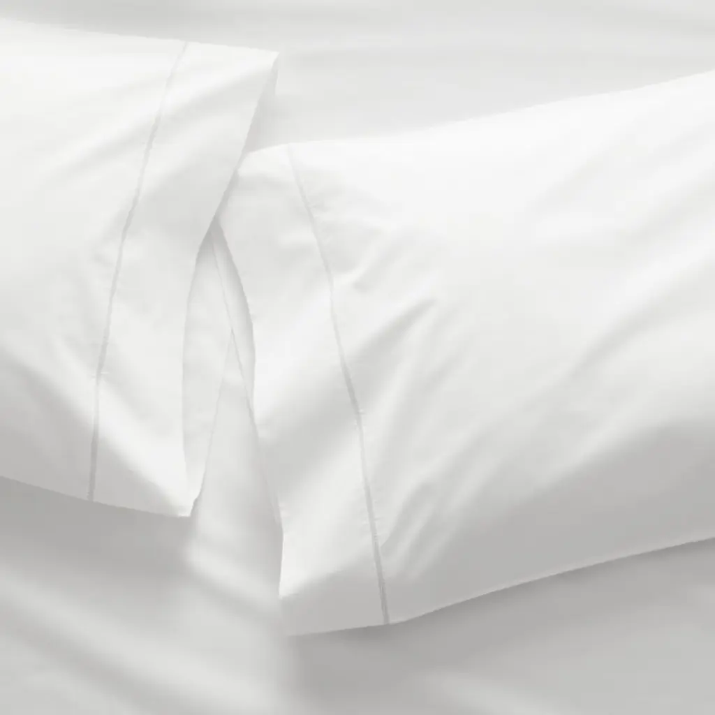 Silky soft sateen cotton sheets spread a luxurious foundation to the bed. Made of white ultrafine organic cotton in a buttery smooth weave, the sheets showcase a beautiful pleat detail on the flat sheet and pillowcases. Set includes one flat sheet, one fitted sheet and two standard pillowcases with full and queen sets or two king pillowcases with a king set.This product is certified by Oeko-Tex an international association focused on textile safety and sustainable production. Oeko-Tex® tests for known harmful substances and chemicals as well as for acidity and color fastness. All components of the product must comply with stringent Oeko-Tex® standards to achieve certification.Bed Pillows also available.
