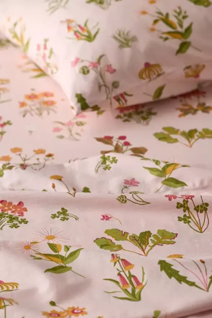 Drift off in a field of wildflowers with this floral bedding with vibrant flowers printed allover. These floral bed sheets come with everything you need to dress up your bed - a fitted sheet, flat sheet and pillowcases, too! Pair these patterned bed sheets with other UO bedding favorites for a coordinated bedding set. Available exclusively at Urban Outfitters. **Features** \- Flori Wildflower Patterned Sheet Set from UO Home made in a cotton-polyester blend \- Cozy, soft cotton-blend fabrication \- Finished with vibrant wildflowers printed allover \- Includes all you need to make your bed: a flat sheet, fitted sheet and pillowcases \- An eco-friendly upgrade, this item is OEKO-TEX® Standard 100 certified free of harsh chemicals \- UO exclusive **Content + Care** \- Pillow inserts sold separately \- Twin XL sheet set includes pillowcase, flat sheet and fitted sheet \- Full, Queen and King sheet sets include 2 pillowcases, flat sheet and fitted sheet \- 80% Cotton, 20% polyester \- OEKO-TEX® Standard 100 Certified \- Meets OEKO-TEX® Standard 100 guidelines which independently test each component for harmful substances for textiles you can trust \- Machine wash \- Imported **Size** Twin XL \- Pillowcase dimensions: 20"l x 30"w \- Flat sheet dimensions: 101"l x 66"w \- Fitted sheet dimensions: 80"l x 39"w x 15"h Full \- Pillowcase dimensions: 20"l x 30"w \- Flat sheet dimensions: 96"l x 81"w \- Fitted sheet dimensions: 75"l x 54"w x 15"h Queen \- Pillowcase dimensions: 20"l x 30"w \- Flat sheet dimensions: 102"l x 90"w \- Fitted sheet dimensions: 60"l x 80"w x 15"h King \- Pillowcase dimensions: 20"l x 36"w \- Flat sheet dimensions: 102"l x 108"w \- Fitted sheet dimensions: 78"l x 80"w x 15"h